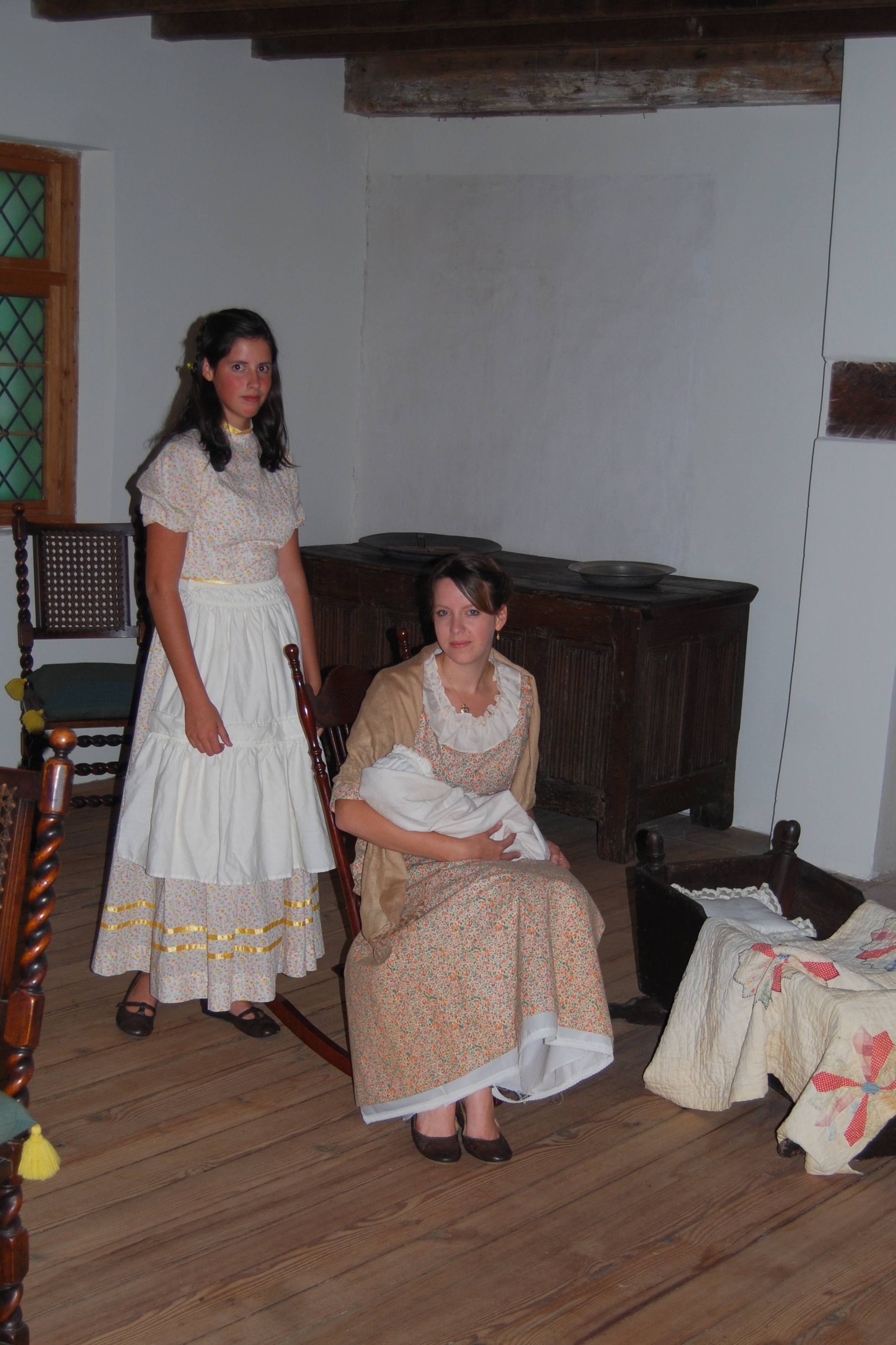 The next stop on the tour was one of the bedchambers, which has been restored to look the way it would have in 1665, when the house was built. These young ladies portrayed members of the original Allen family.