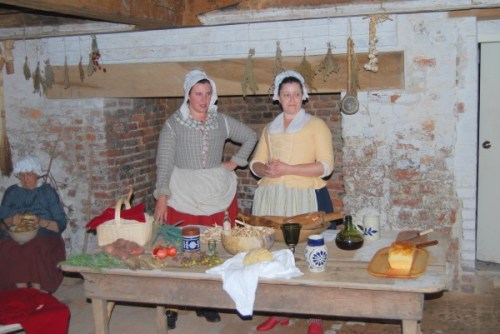 In 1676, the home was overtaken for three months by followers of Nathaniel Bacon during Bacon’s Rebellion. (Prior to that, the house was known as Allen’s Brick House). Although the Allens fled the home during that time, the servants remained there. The rebels ransacked the house, helping themselves to the Allen’s food, wine and valuables left behind by the Allens. The next skit on the Twilight Tour took place in the cellar and featured the Allen’s cooks and two of Nathaniel Bacon’s followers.