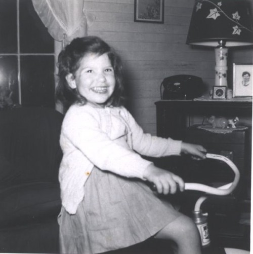 Since I don’t have a photo of her (she was funny about having her picture taken), here’s one of me on that tricycle. This was probably taken Christmas morning – I really don’t remember ever riding it INSIDE the house. And that looks like a brand new tricycle-smile.
