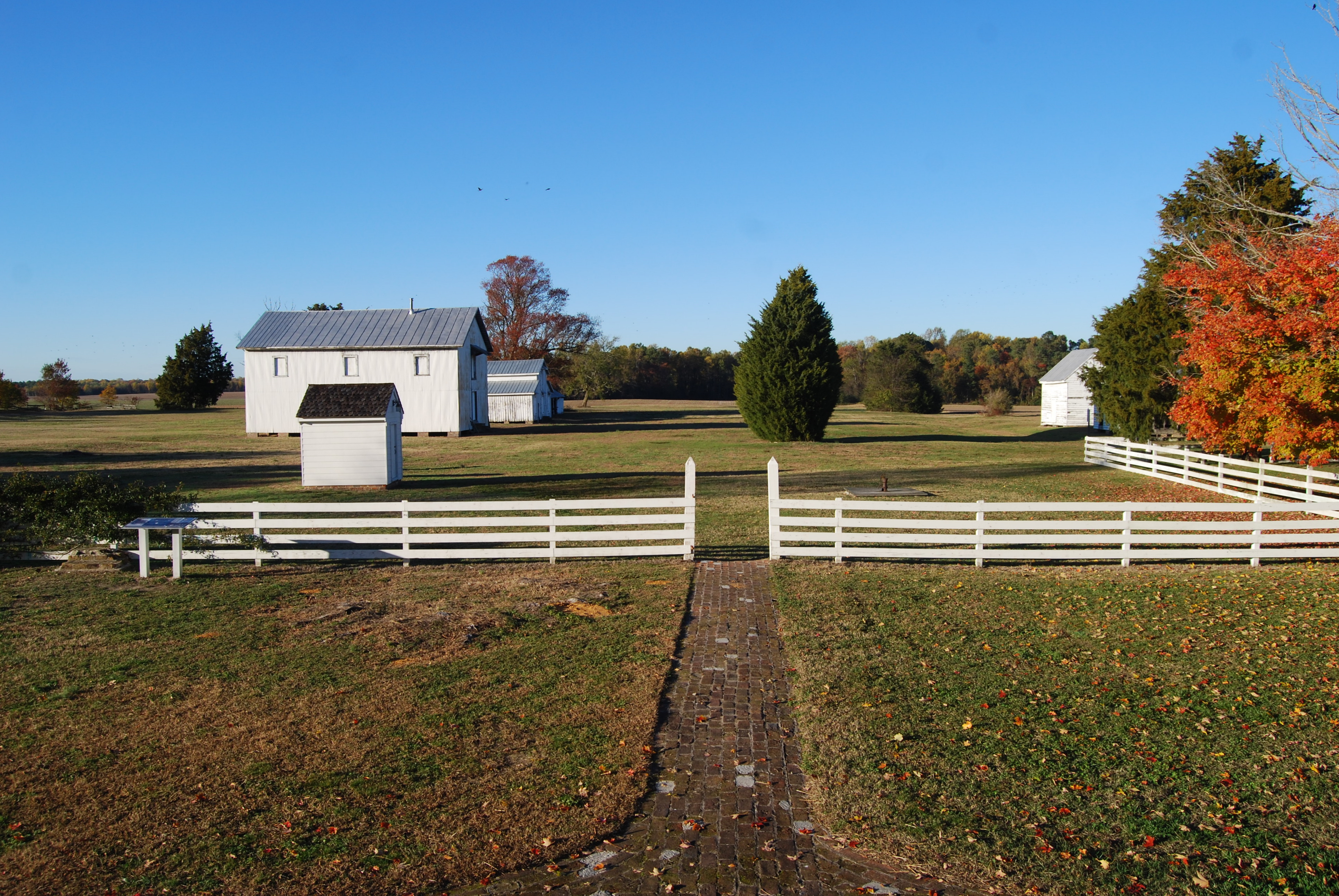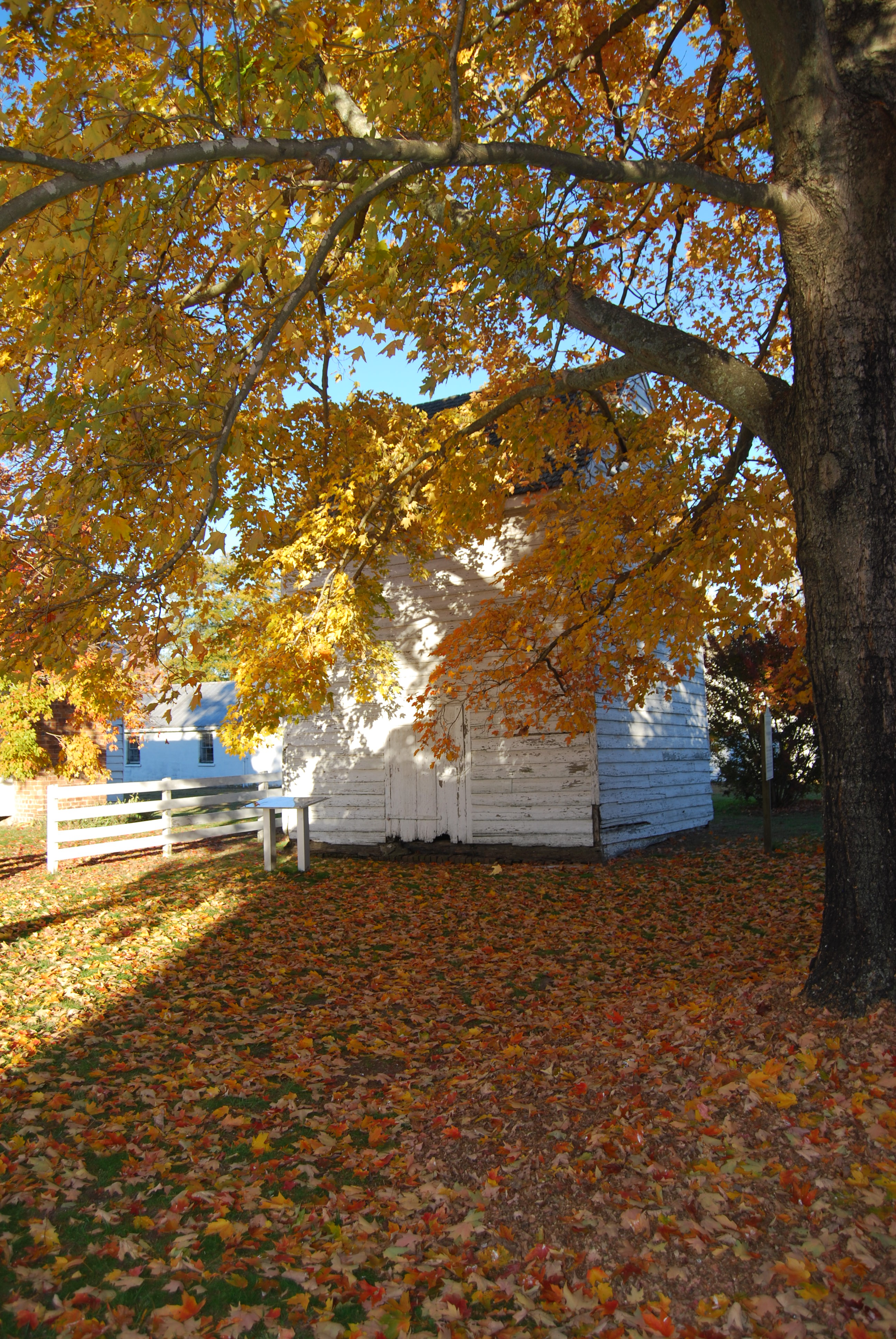 The trees at Bacon’s Castle are bright yellows and oranges.
