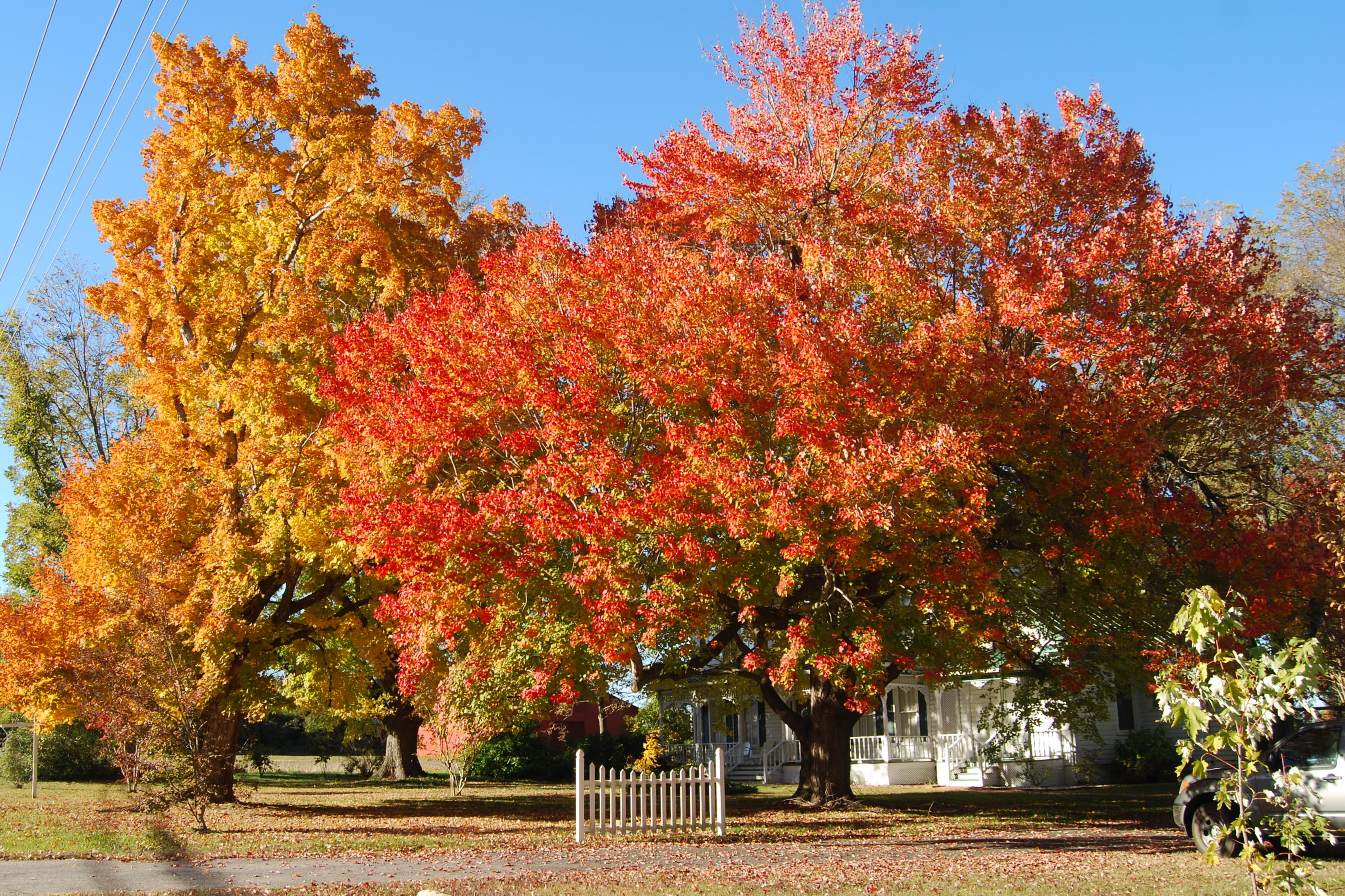 The trees in our area are now showing their autumn colors. These are in the little town of Surry. You can always count on these trees to be a beautiful orangey-red in the fall.