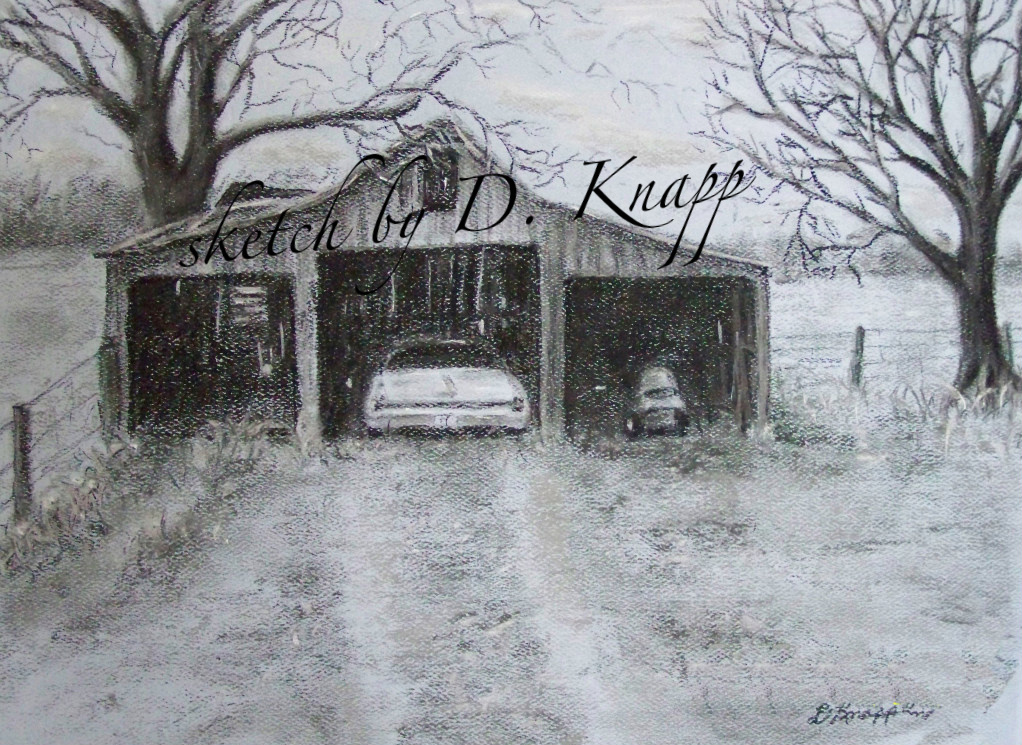 A few years ago, my niece, Donna, who is super-talented – just like her siblings and their mother, did this sketch of the old shed. Although my Mom’s car and riding lawn mower weren’t in the picture Donna went by, she added those into the sketch! I told you she was talented.