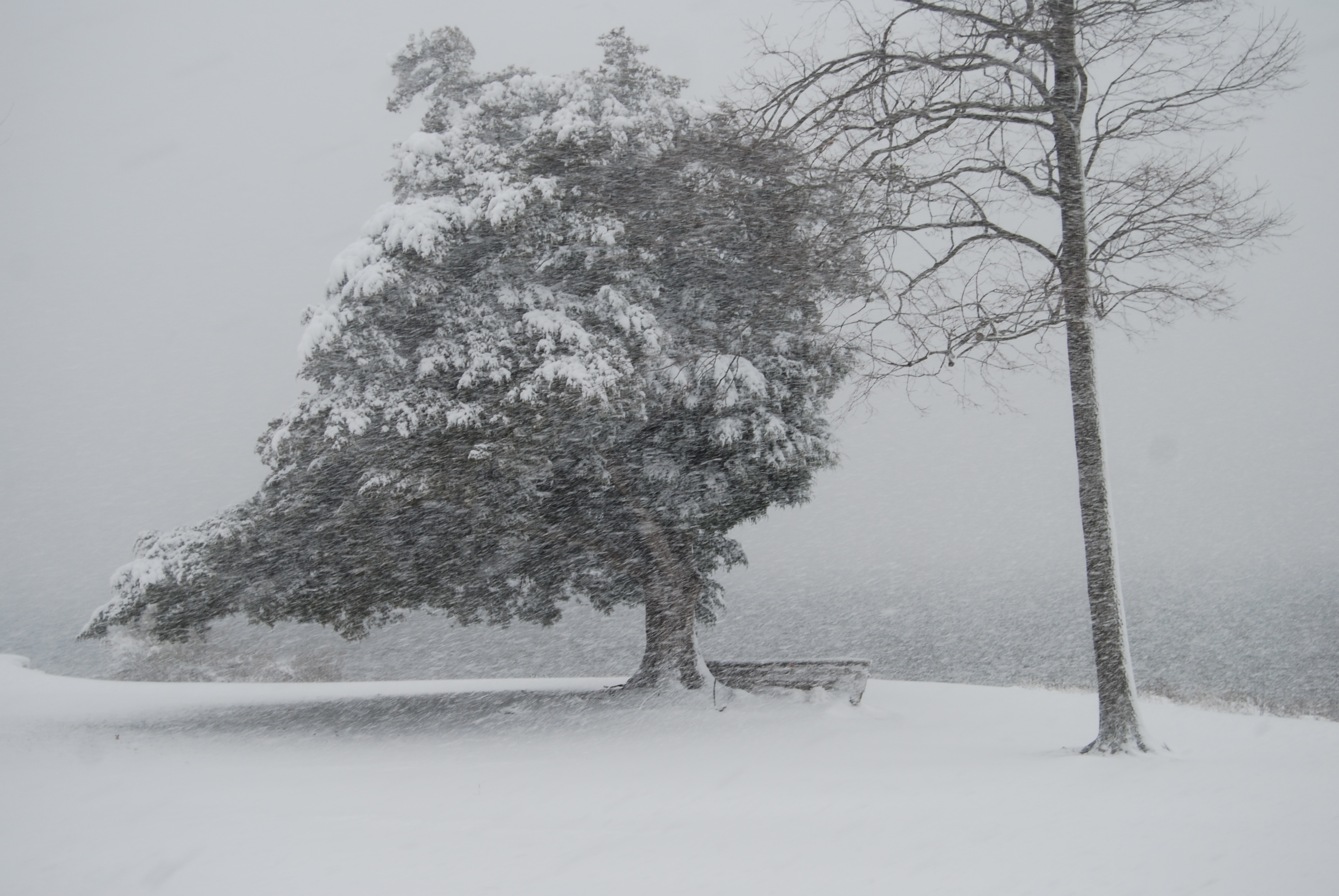 And our old cedar tree, during the worst of the storm, taken from the side door of the garage.