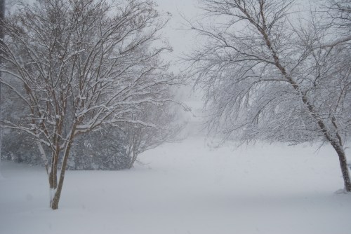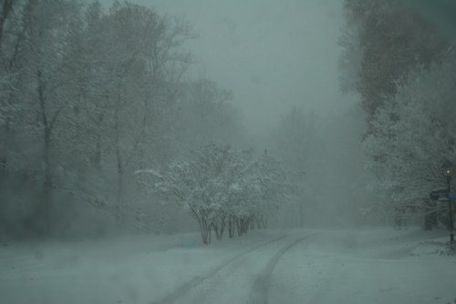 During the afternoon, we had near-blizzard conditions. This is our yard, taken from the front porch.  At this point, I wasn’t leaving the house.