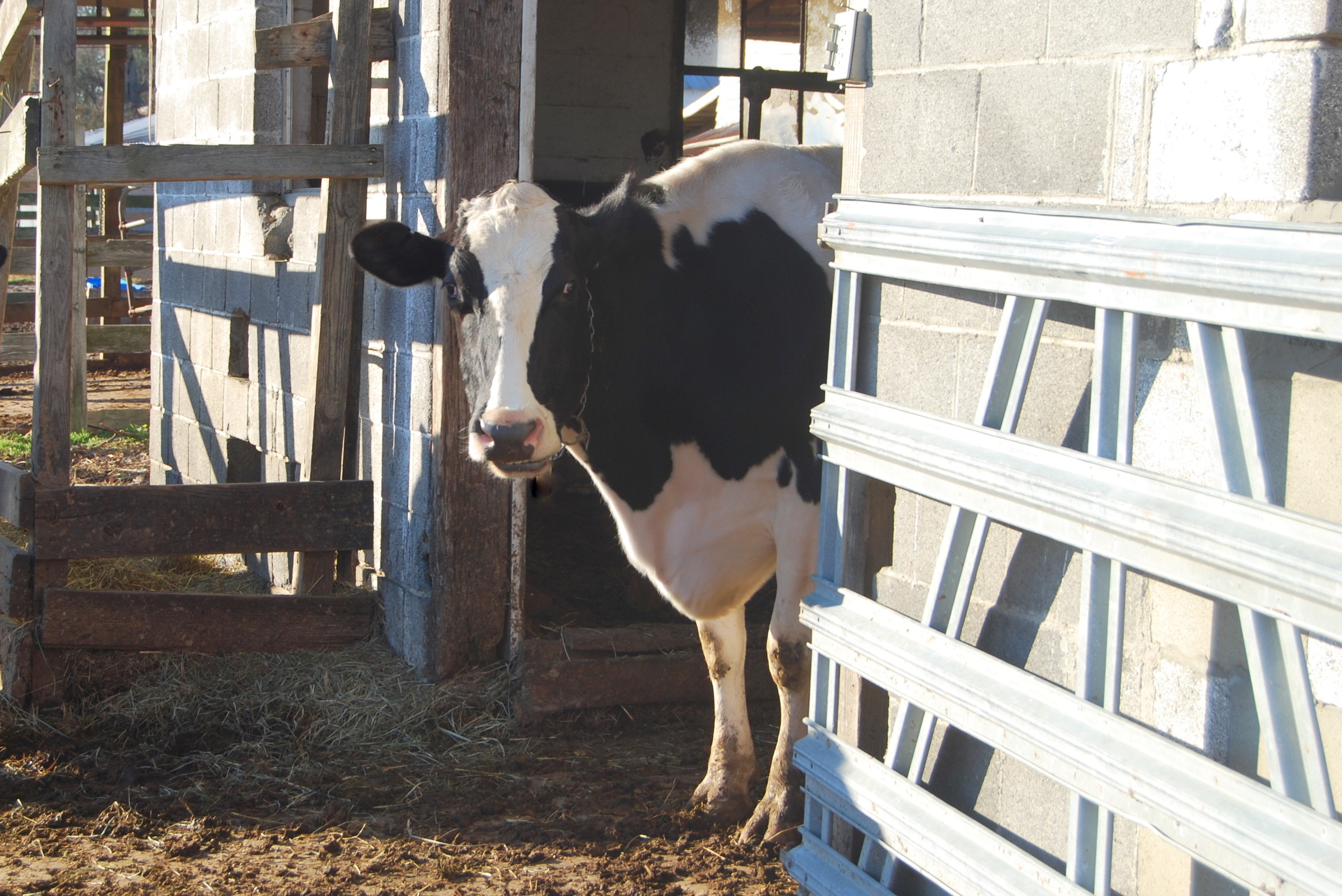 Back to our visit last week. The cows were once brought into this part of the barn to be milked. This was where I spent the majority of my dairy barn time. And included for your viewing pleasure, the south end of a north-bound cow.