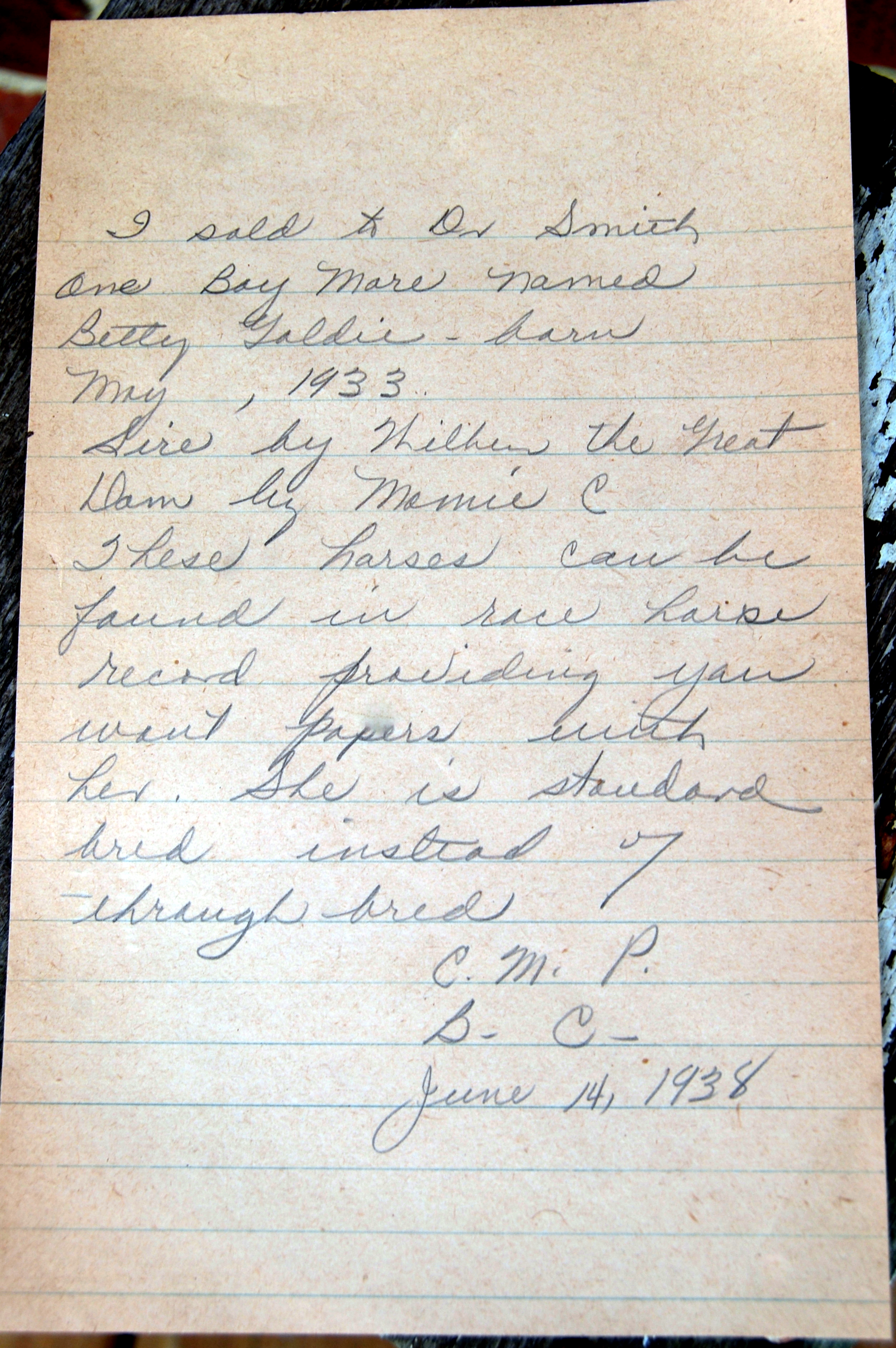 Just last week, I uncovered an old journal, and within the pages of the journal was this “bill of sale”, written in pencil (graphite).