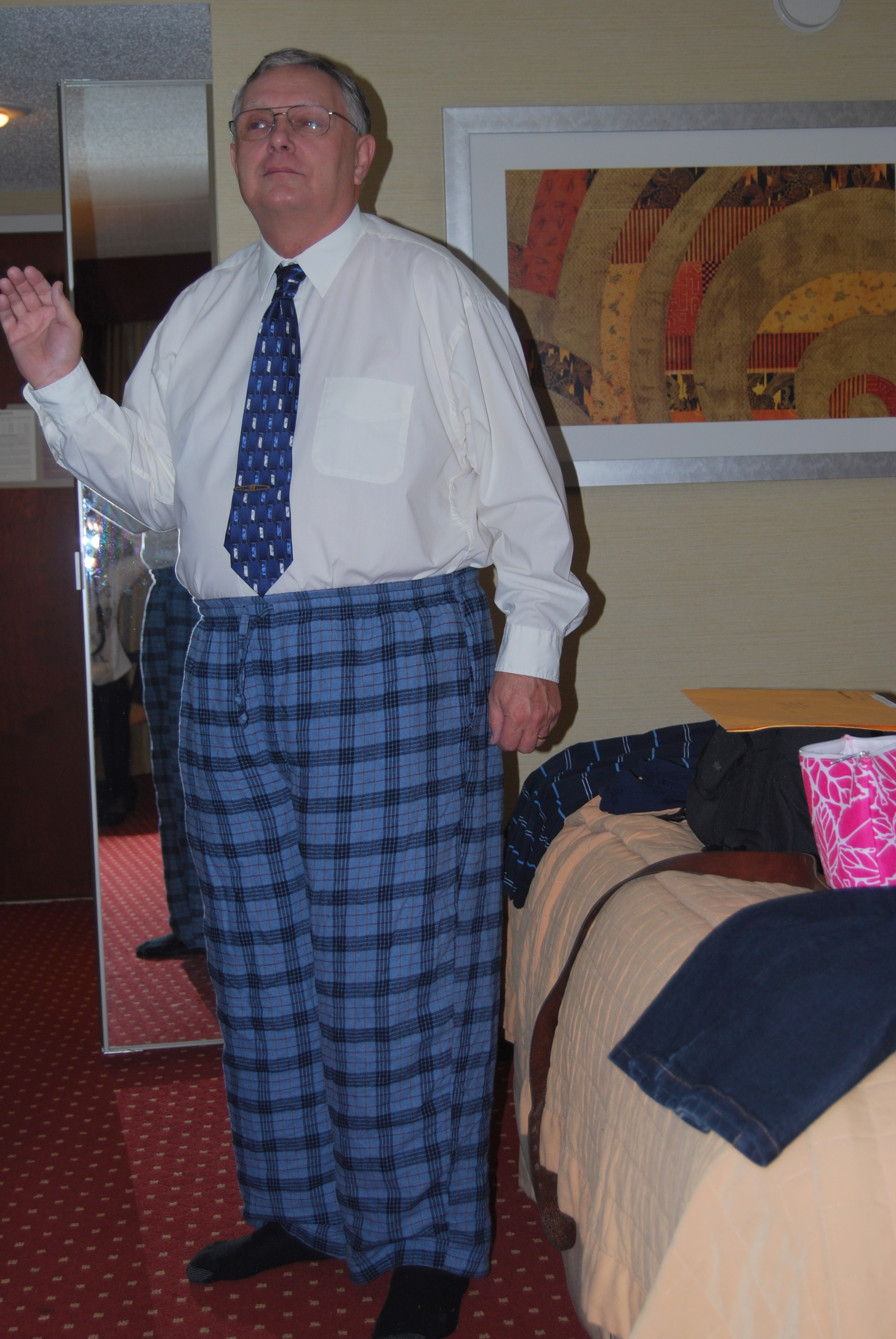 No, you may not wear your pajama pants to the banquet. Although they DO match your tie”.