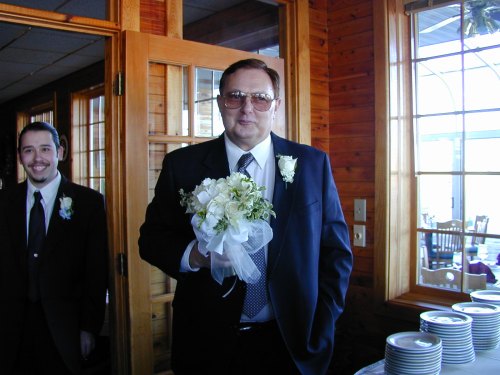 But back to the smile photo: the day of our wedding, I had my camera with me almost the entire day. During our reception, I wanted to get a photo of our wedding cake before it was cut, so I asked Motor Man to hold my bouquet for just a second.