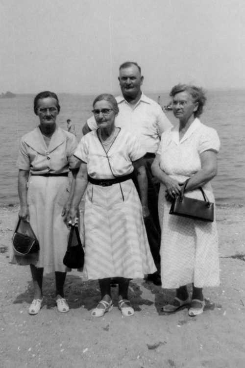 My grandmother, Mae, is on the far right. The other women are two of her sisters, but I’m not sure which ones (it was a large family). The man is her brother, Jimmy. My grandmother died in 1969, so this was probably an early 1960’s photo. Maybe 1950’s.