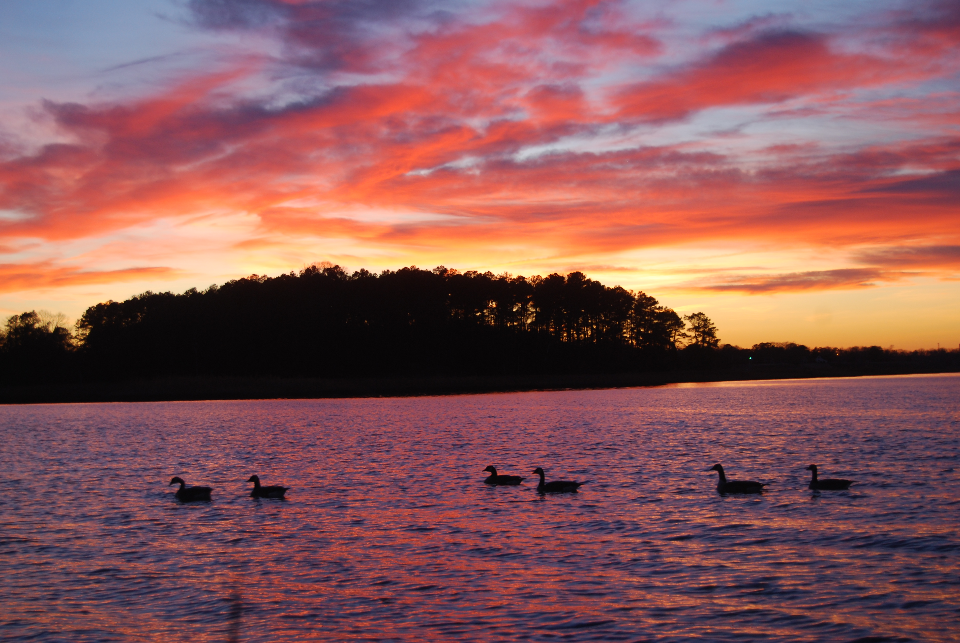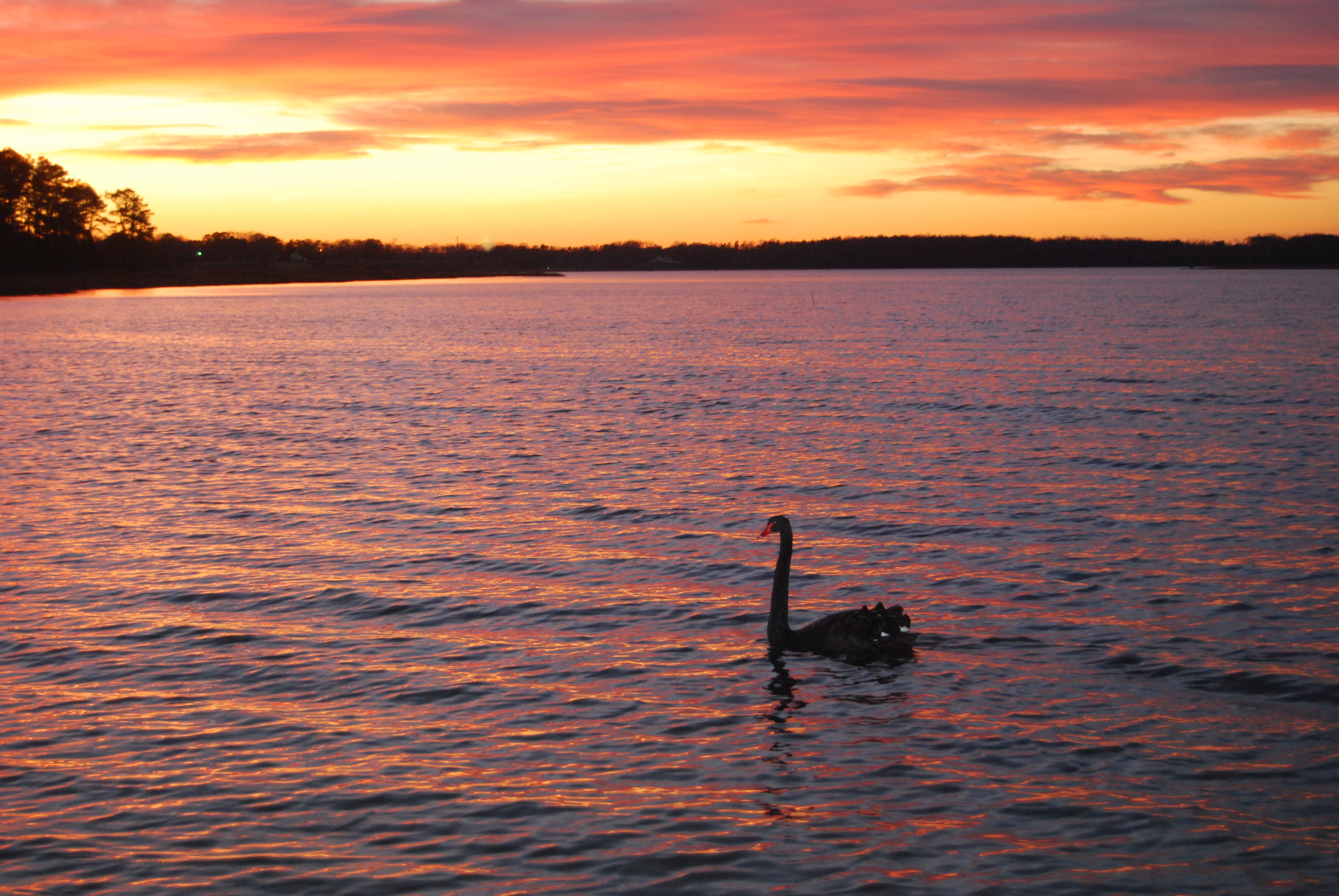 Tagged geese, sunset, swan, water