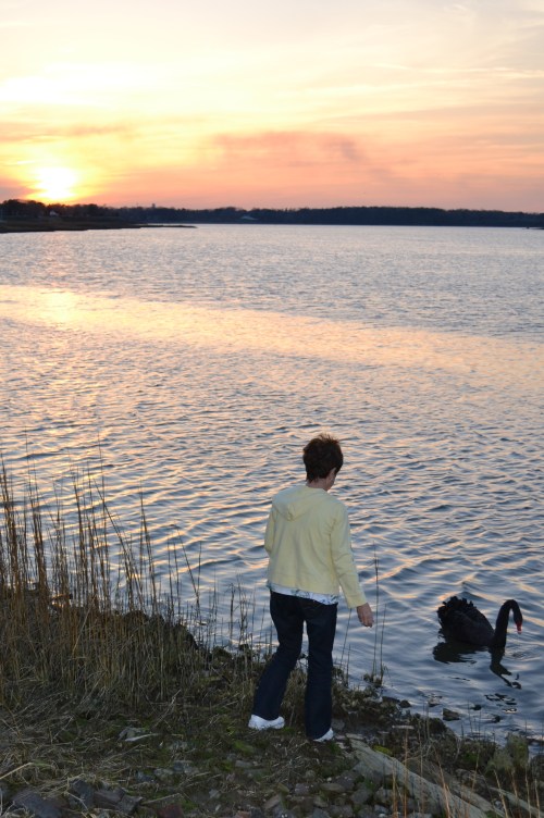 So we went out to take some photos of the sunset, and there was Groom Swan, waiting for bread.