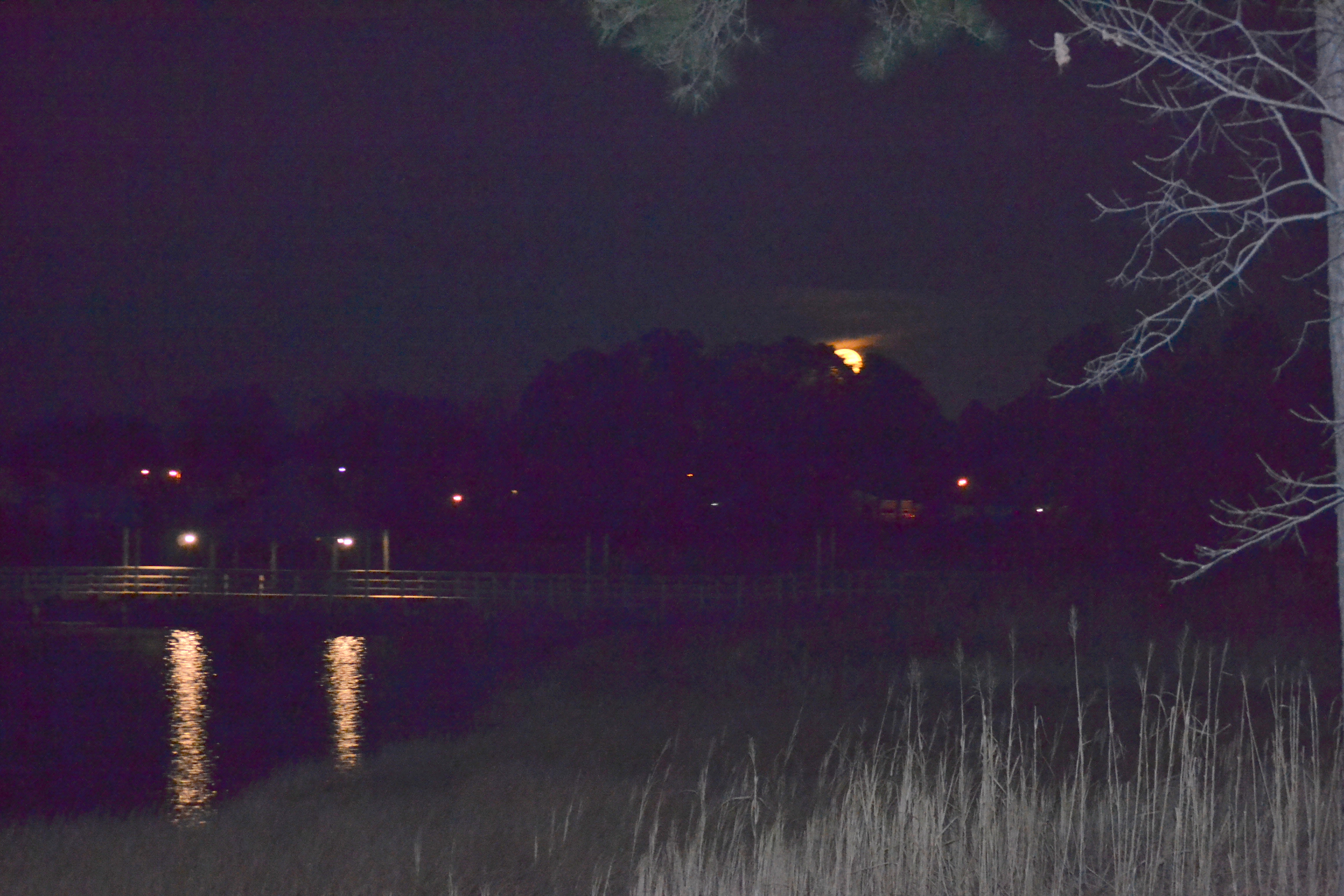 Shortly after Groom Swan’s dinner, Motor Man and I spotted the Supermoon, rising behind the trees.