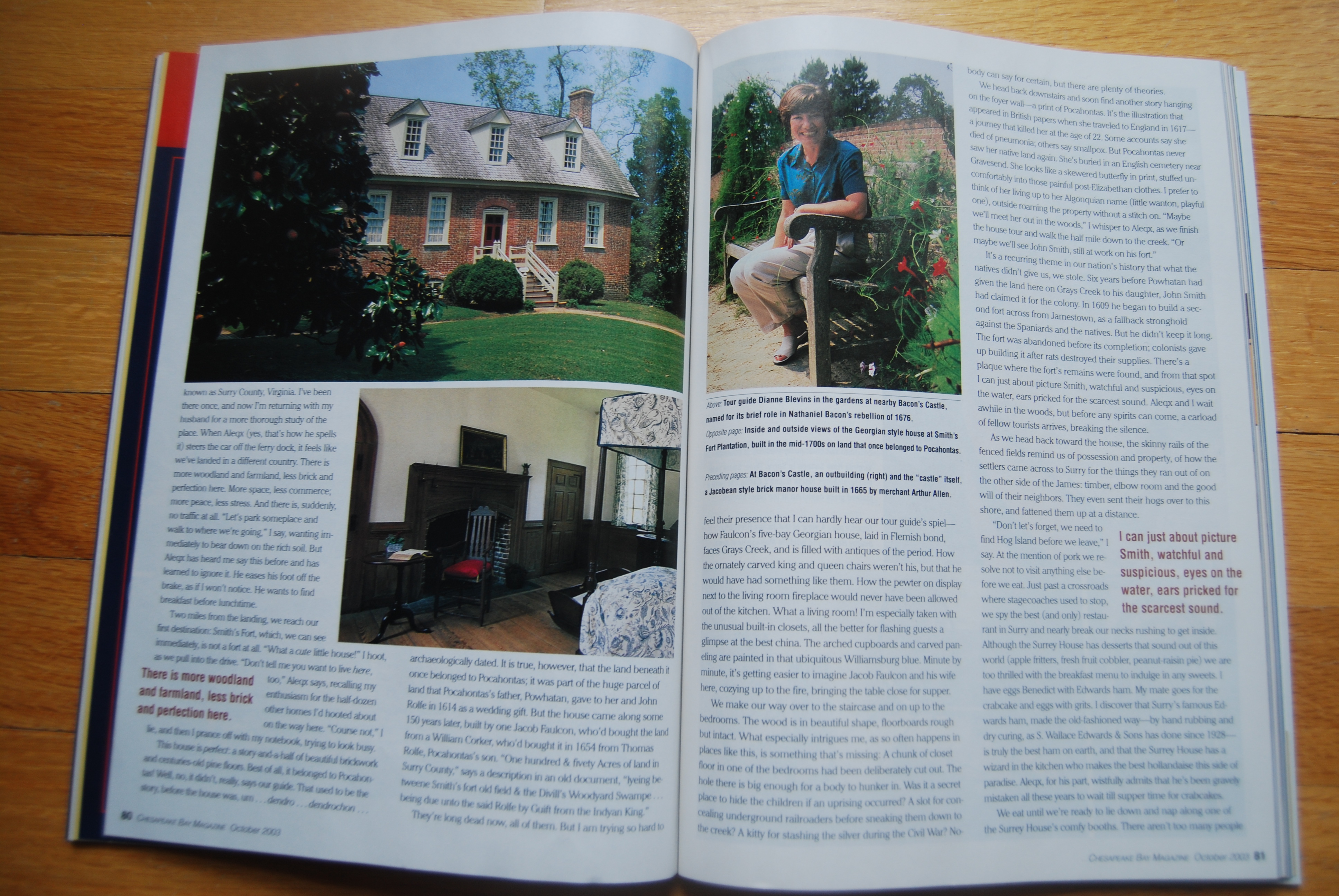 I had forgotten all about it, until two or three years later, when I received a call from someone working at Bacon’s Castle.  It seems that the magazine was putting final touches on the article, and they wanted to confirm my name.*