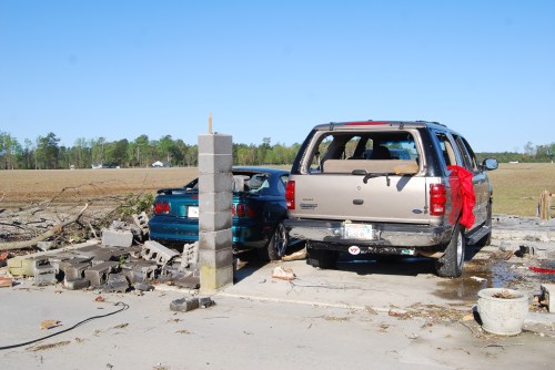 This is the home of friends of ours. They were hunkered down in the tub during the storm. Can you tell that some of their furniture is still in place, even though the back wall is completely gone? It reminds me of furniture inside a doll house.