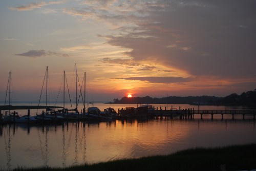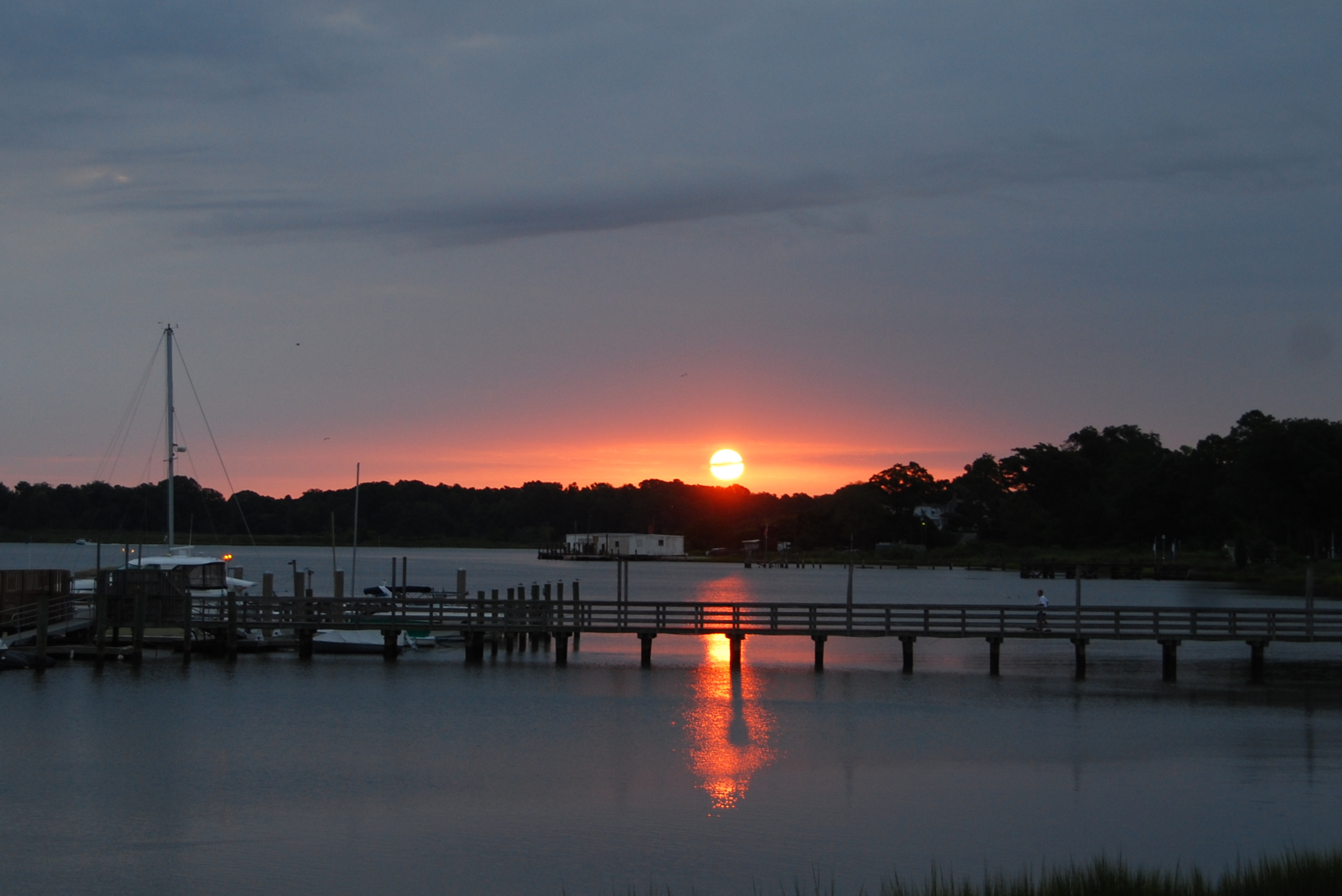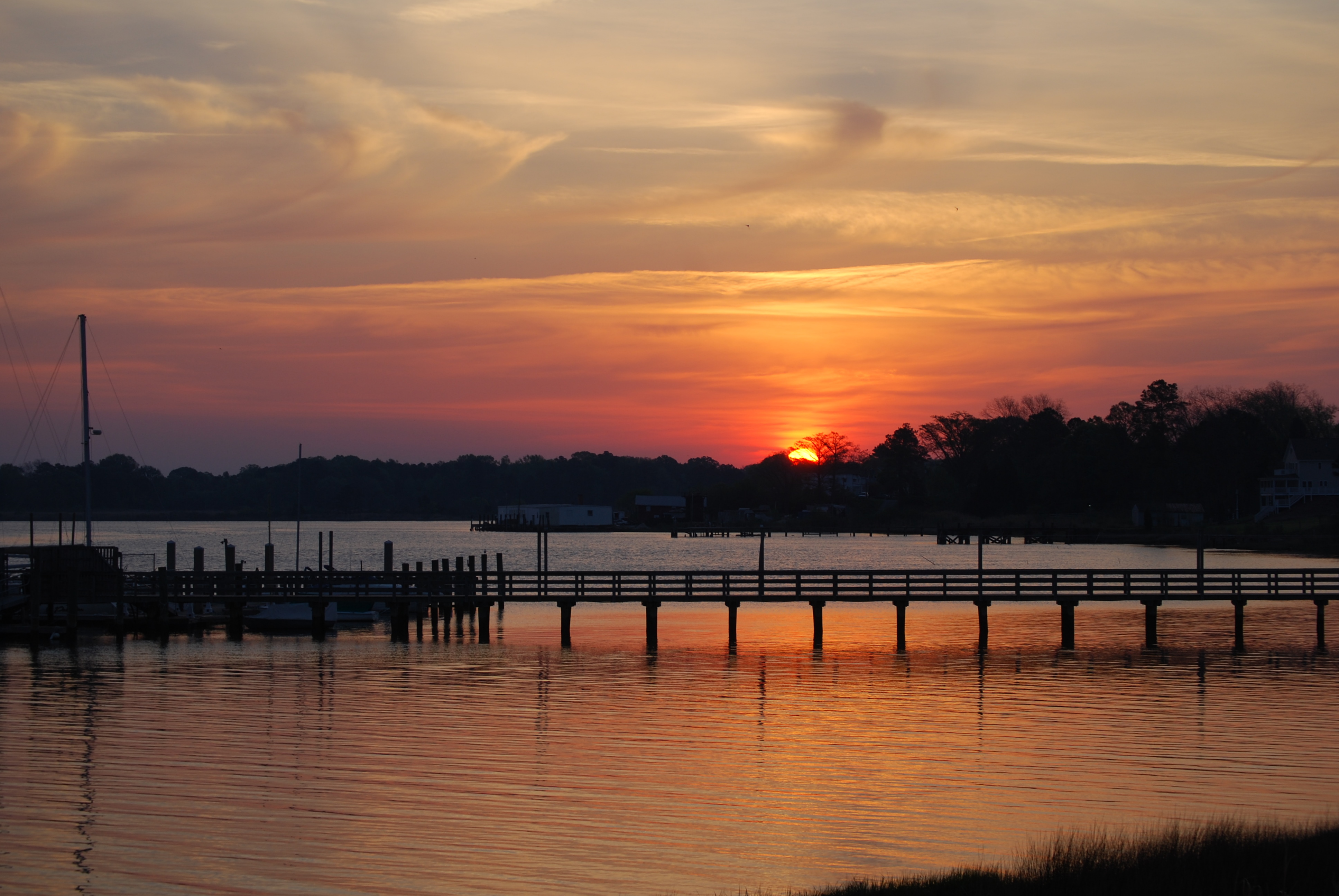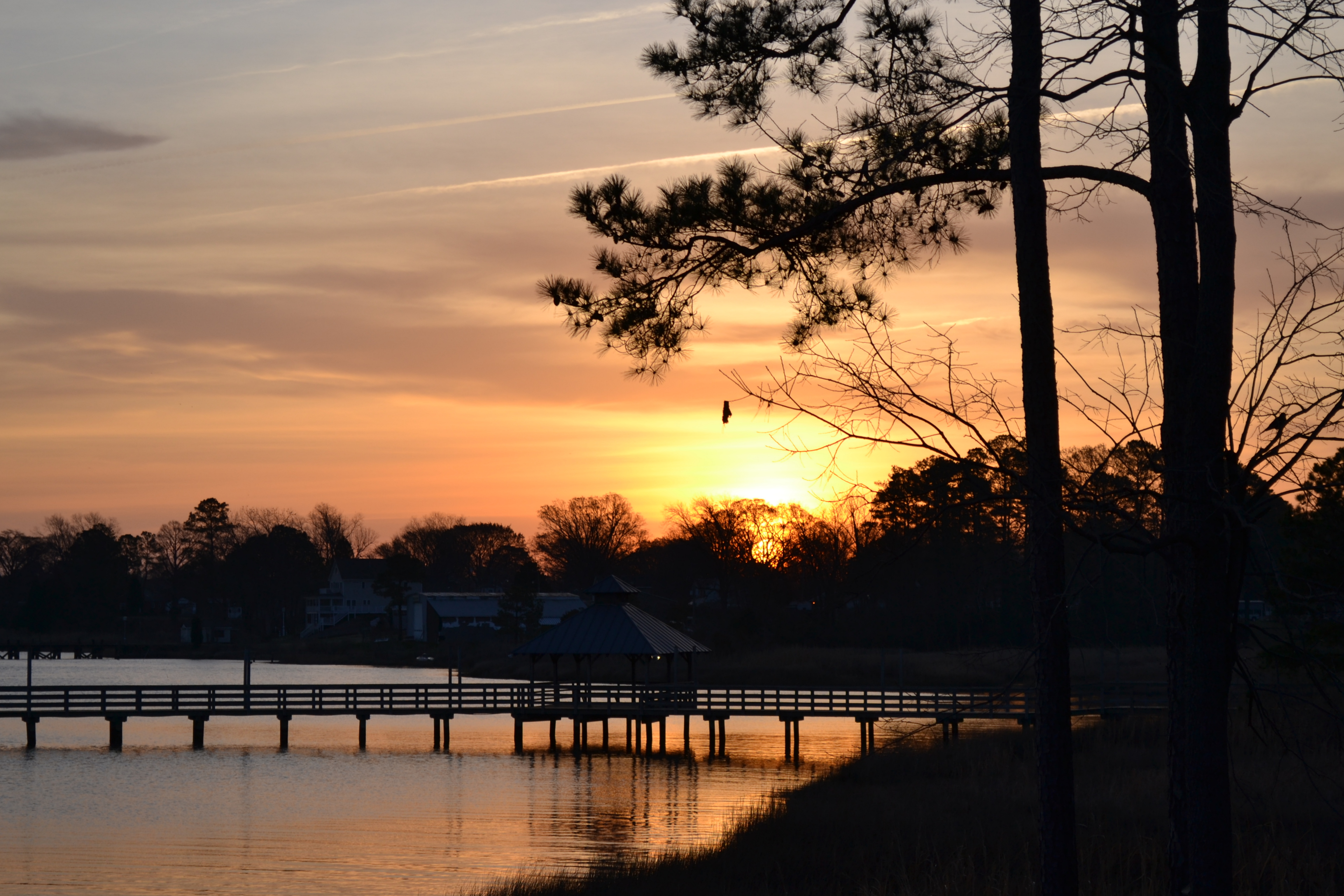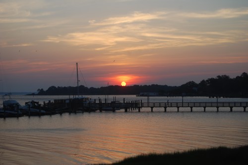 All of my sunrise photos are taken from our deck. The winter sunrises are really out of view from that location. So we’ll begin with a March sunrise. For a point of reference in these pictures, notice the pier and the treeline in the background.