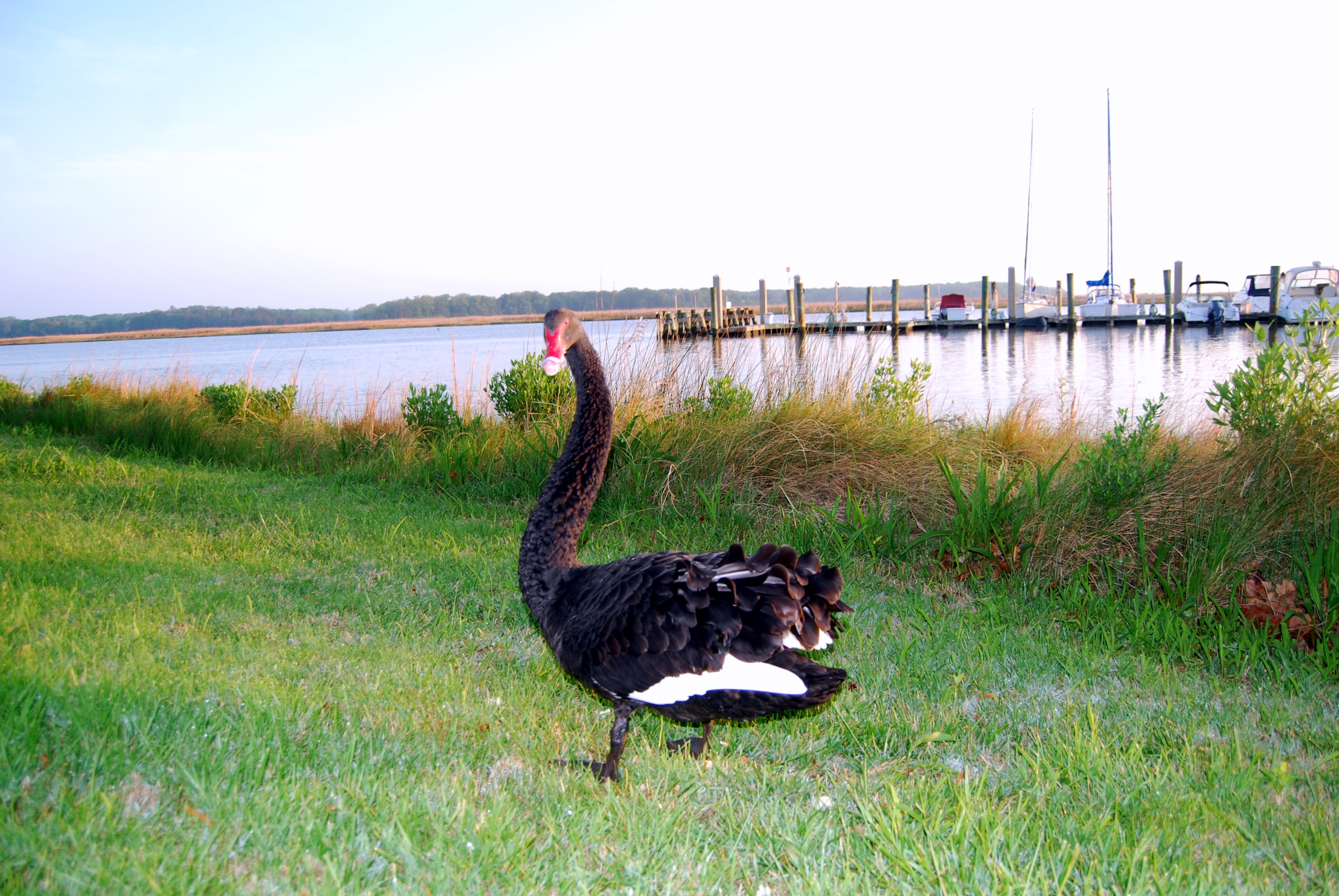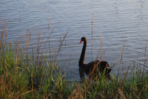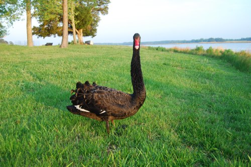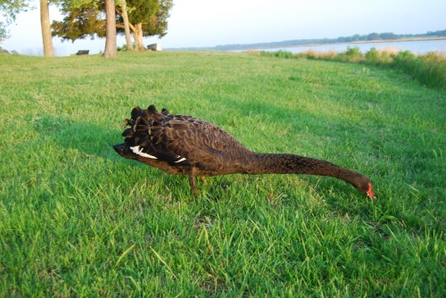 If you’re new to my blog, let me fill you in on our swans. They aren’t really ours, but they visit quite often. Usually they visit as a pair: a black one and a white one, although we do see them separately. We began calling them Groom Swan and Bride Swan when they graced us with their presence during a wedding on our lawn a couple of years ago. Unplanned, but a nice touch.