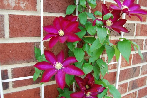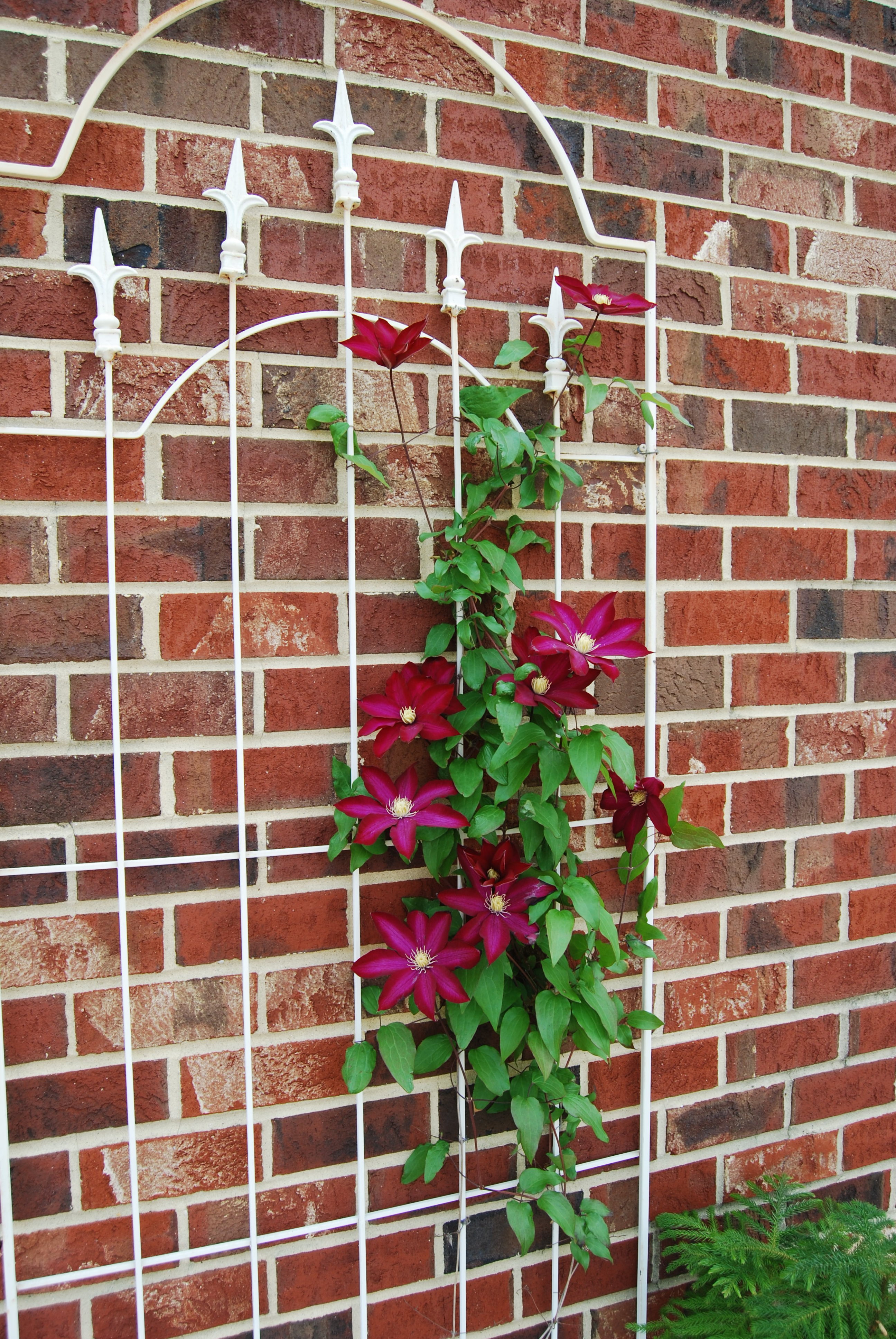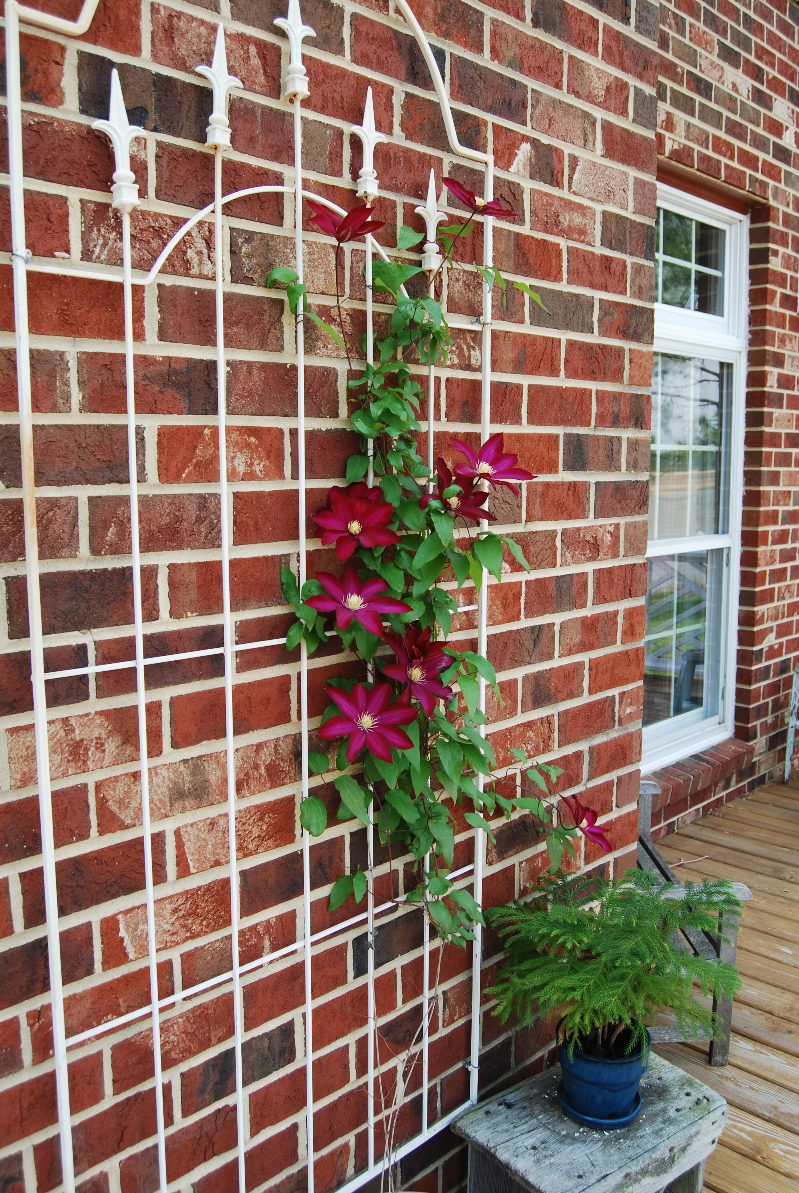 Several years ago, I bought a whitewashed iron trellis to place on our deck in front of the chimney. And I bought a clematis to grow on the trellis. I’ve never had any luck with clematis; I think this one may have bloomed for a short while the first year. And since then it really hasn’t been impressive, meaning it was done after having one or two flowers at the beginning of spring.