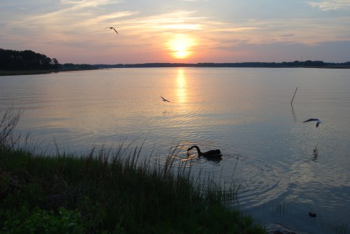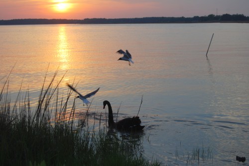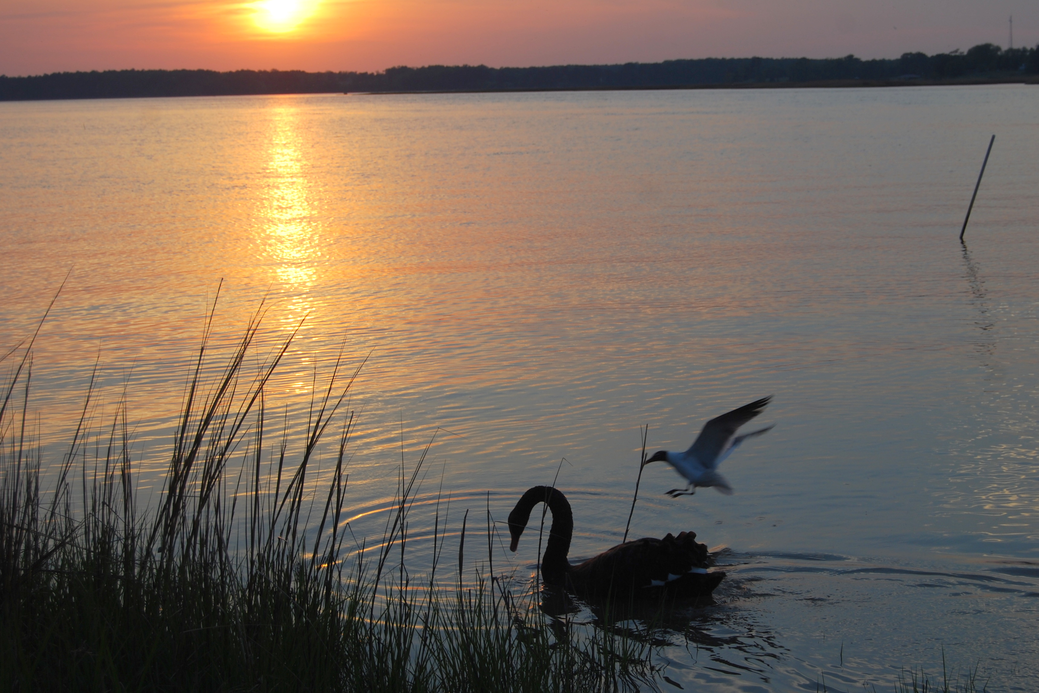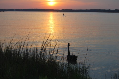 Groom Swan and I had good team work, so the gulls had to look elsewhere for food. Finally the last one flew off into the sunset,