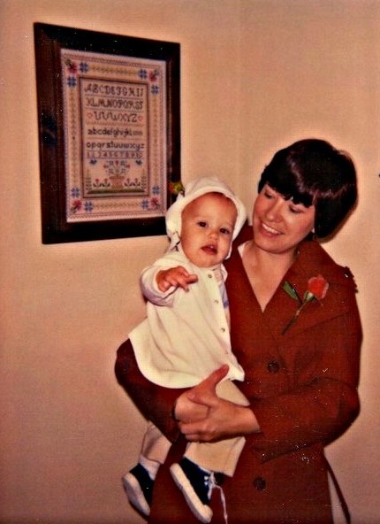 The next picture was taken on my first Mother’s Day, when Marshall was almost a year old.  Notice the red rose on my lapel. It was an old tradition at our church to wear a red rose if you were fortunate to still have your mother;  a white one if she were no longer with you. It’s hard to see in this picture, but Marshall had a tiny red rosebud pinned to his hat.