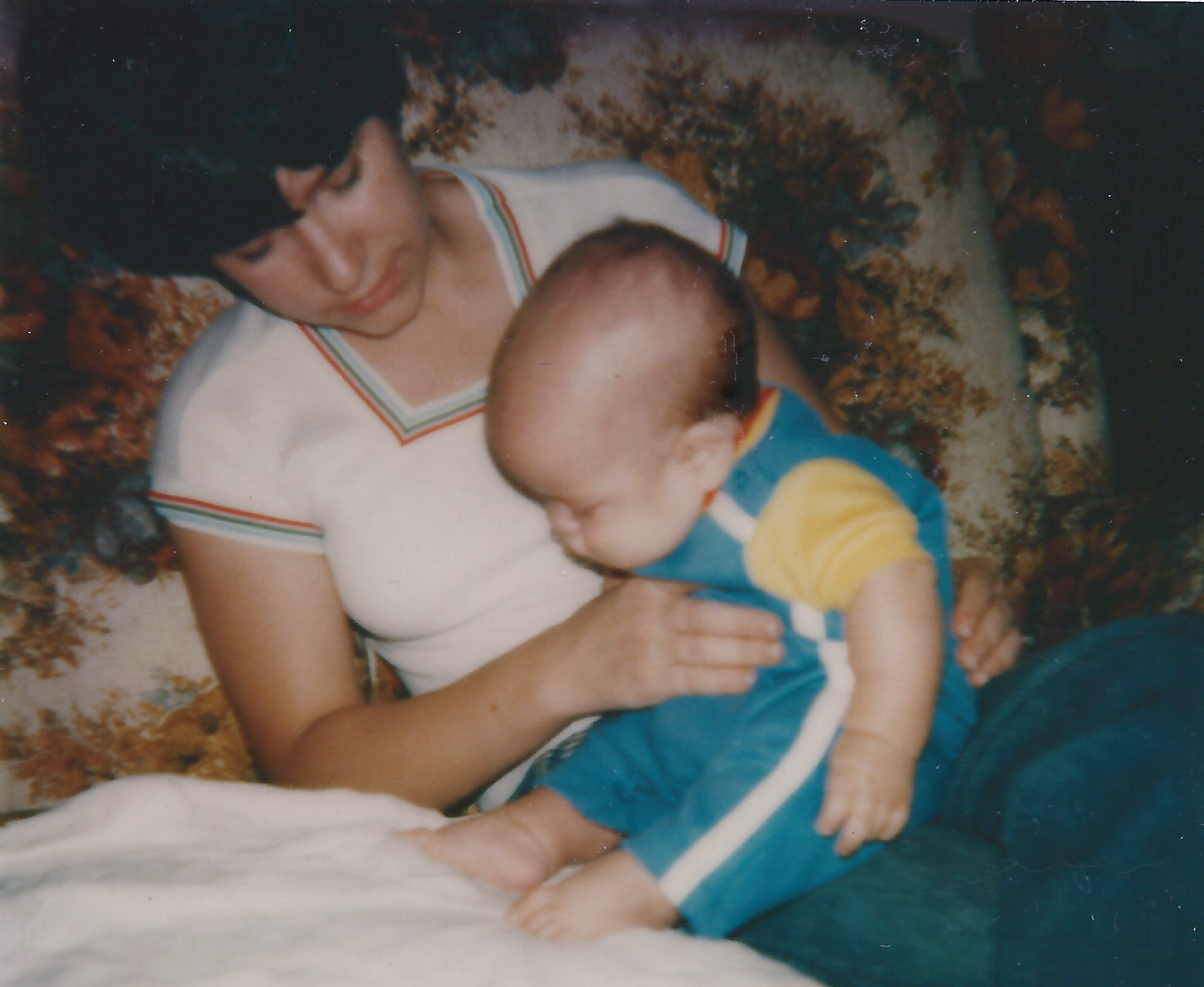 My mom took this photo of Marshall and me when he was four months old. She had come to visit that day, and while we were sitting there chatting, Marshall discovered his toes.