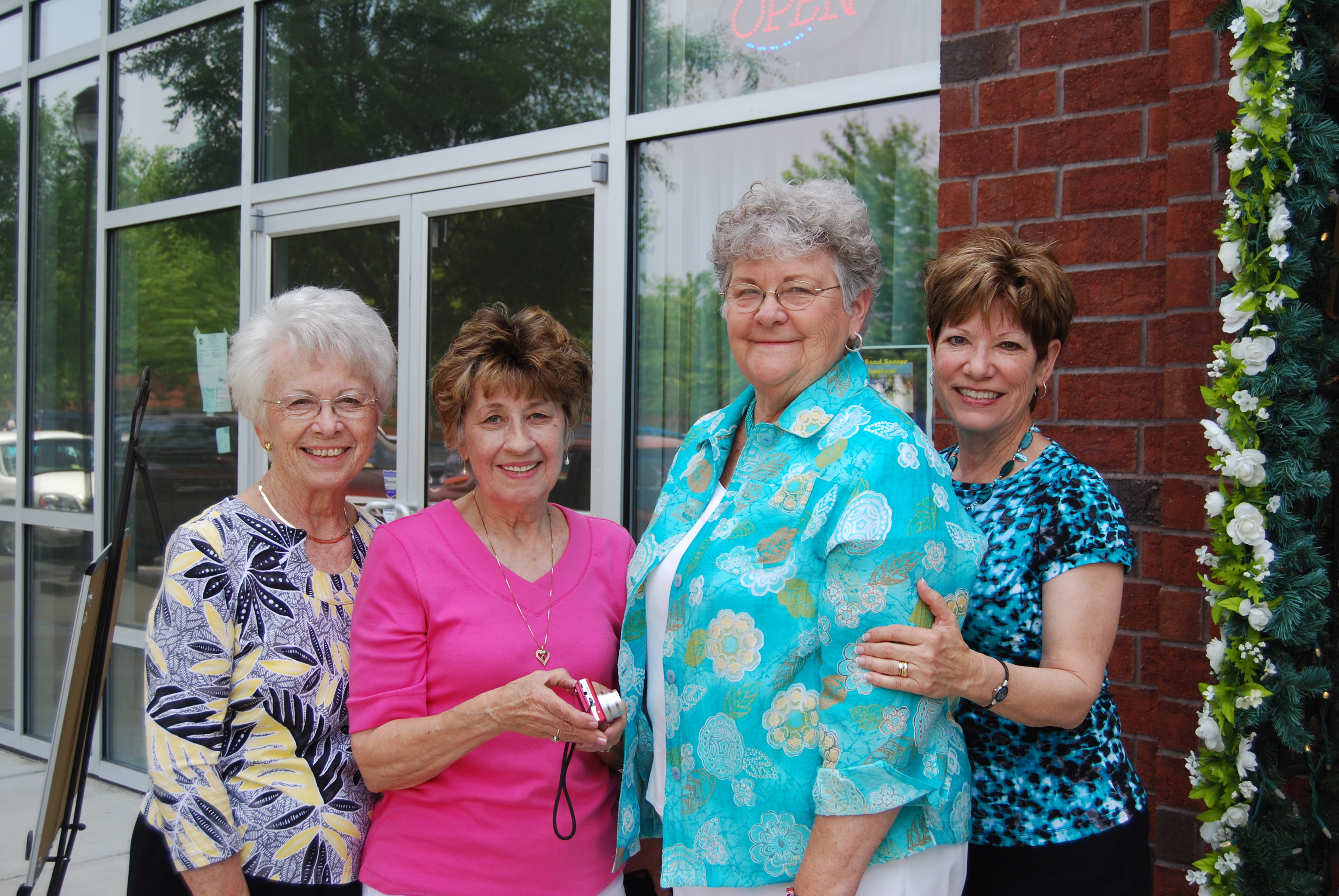 Phyllis is on the far left. She and her husband own a race car. Karen is in the pink. Her son drives the car that Phyllis and her husband own. Doris is in the blue, and her husband is crew chief for the car that Phyllis owns and Karen’s son drives.  That’s me on the far right, and at one point, when Karen’s son drove in a different division, my Motor Man built his engine.