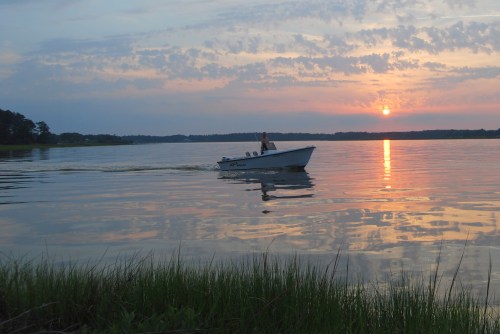 During the sunset, a boat came by from the creek that runs to the left of our point.