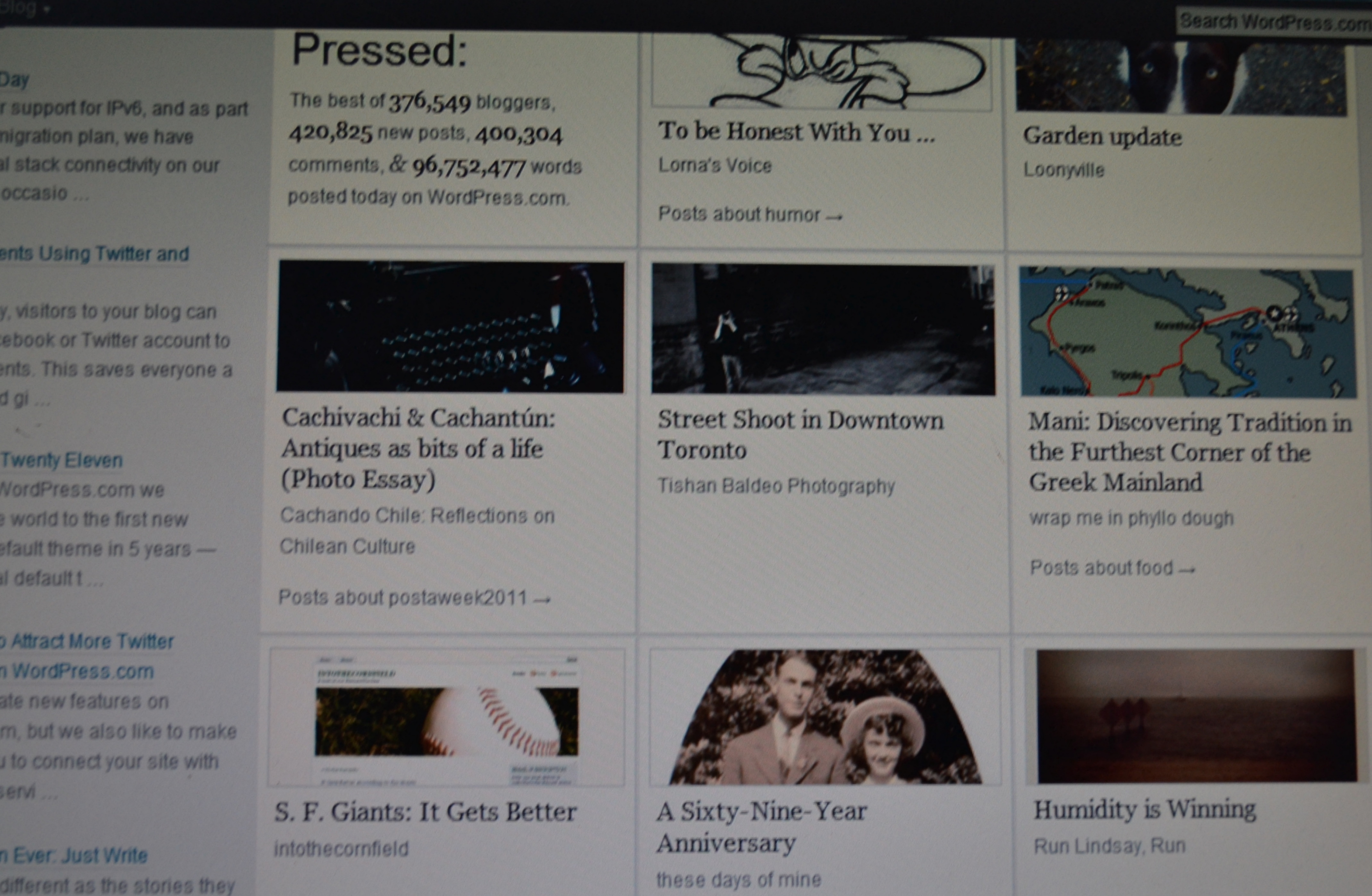 On Thursday, my blog was featured again on Freshly Pressed, the homepage of WordPress.com. And, just as before, rather than pinching myself to make sure I wasn’t dreaming, I took a photo of my computer screen.