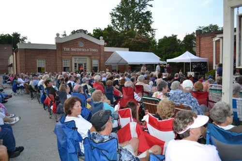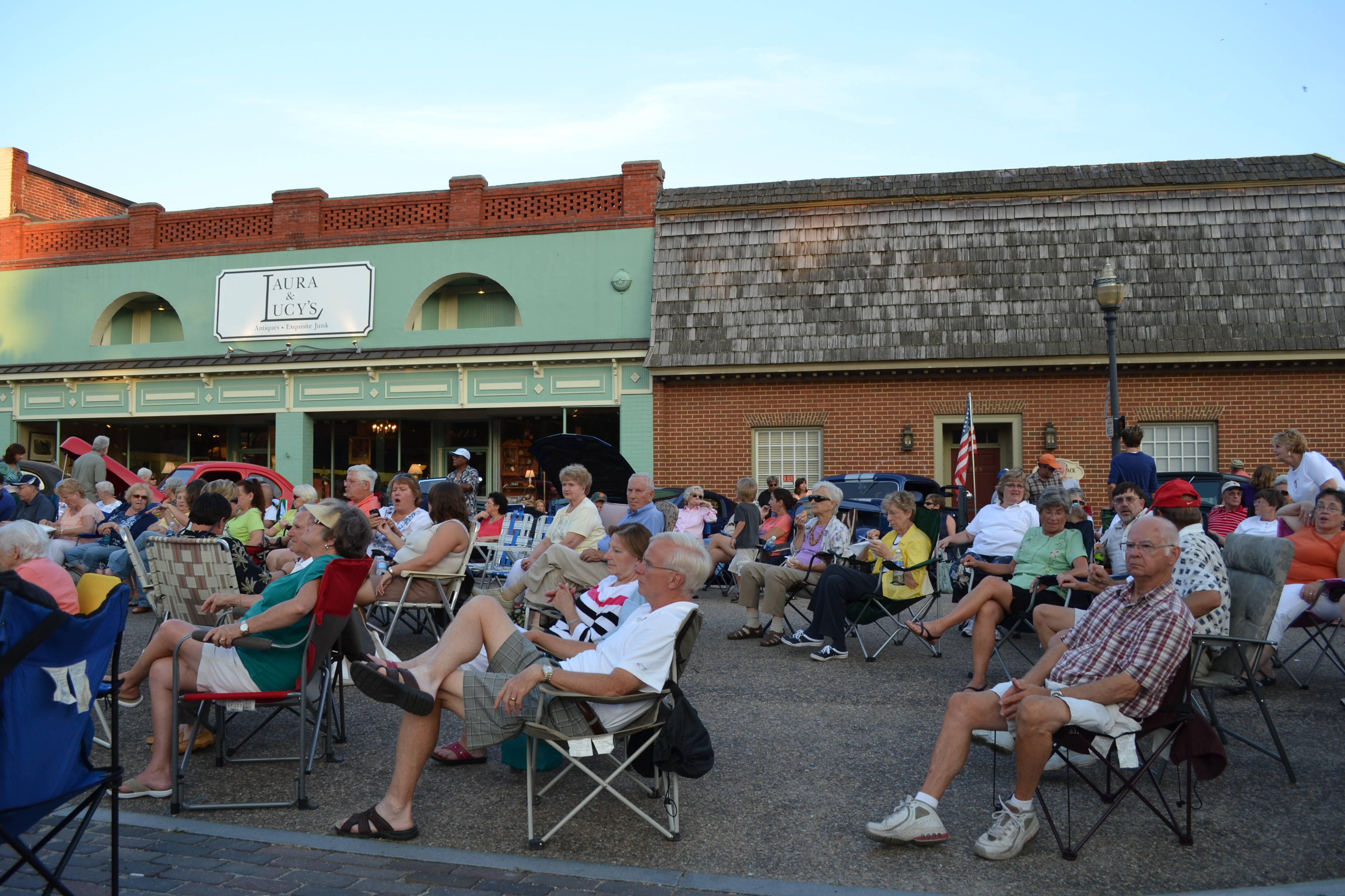 Folks gathered on the village green, located in front of our local newspaper office, for a beach music concert.