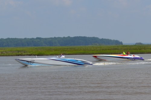 Each year, on the second Saturday in July, a powerboat club based in Richmond participates in a “poker run”, known as “Jammin’ on the James”,  down the James River to Portsmouth. One of their stops is for lunch at a waterfront restaurant in Smithfield, not far from where we live.