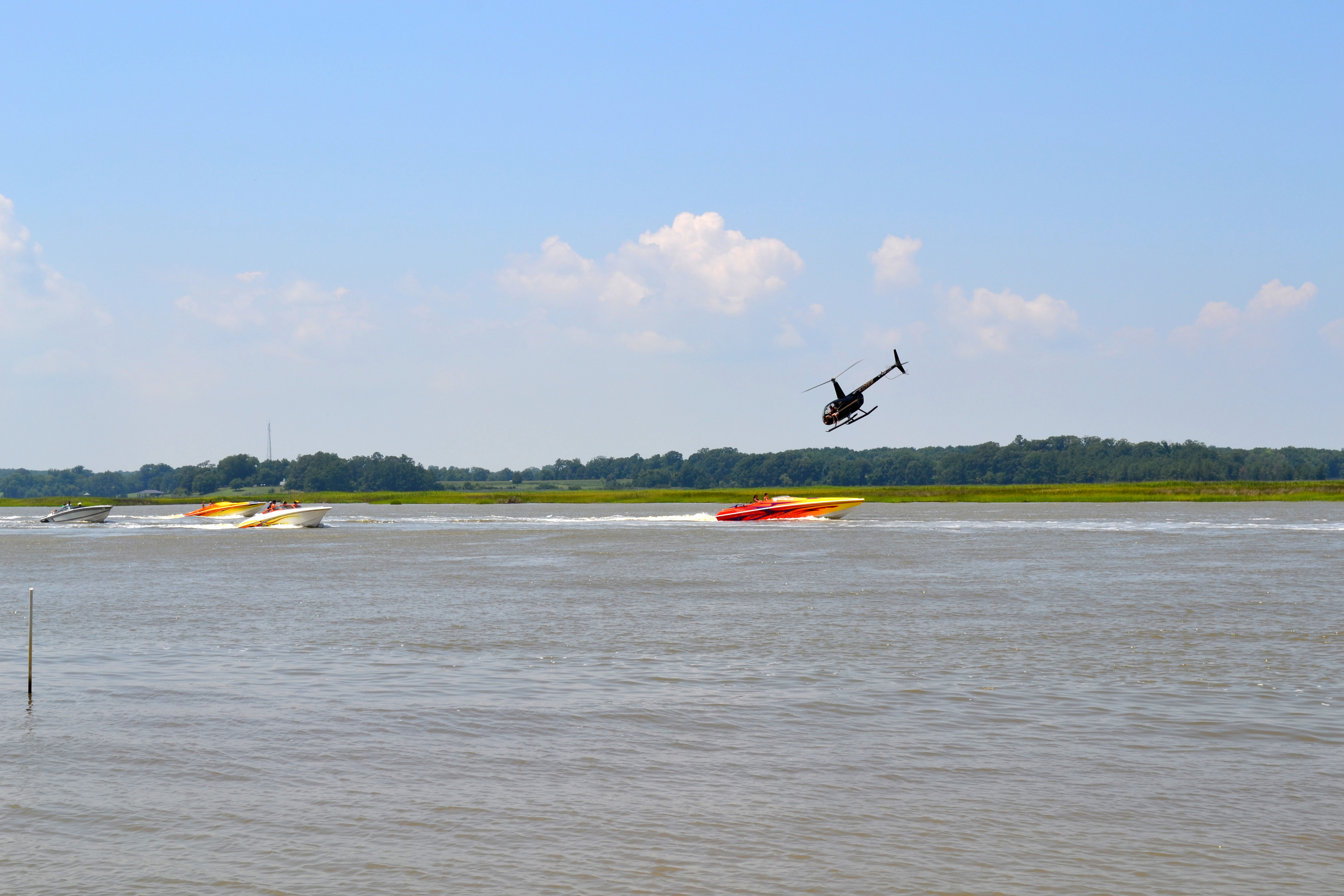 A helicopter follows the boats on the poker run and takes photos.  He was definitely part of our entertainment.