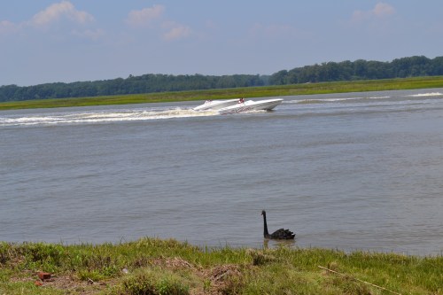 As the boats made their return trip by our house, Groom Swan was Jammin’ on the Pagan. And waiting for someone to throw out some bread.