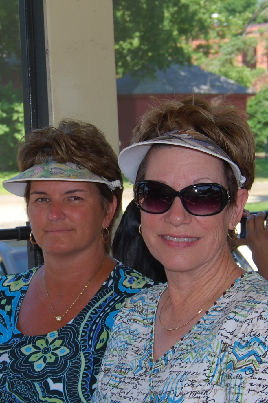 Did you realize that if Bev had on sunglasses you could almost pass for twins? Sun visor…check. Dangle earrings….check. Hair color…check. Tops with blue in them….check. Good pictures. Tell Bill and JR to get with the program!
