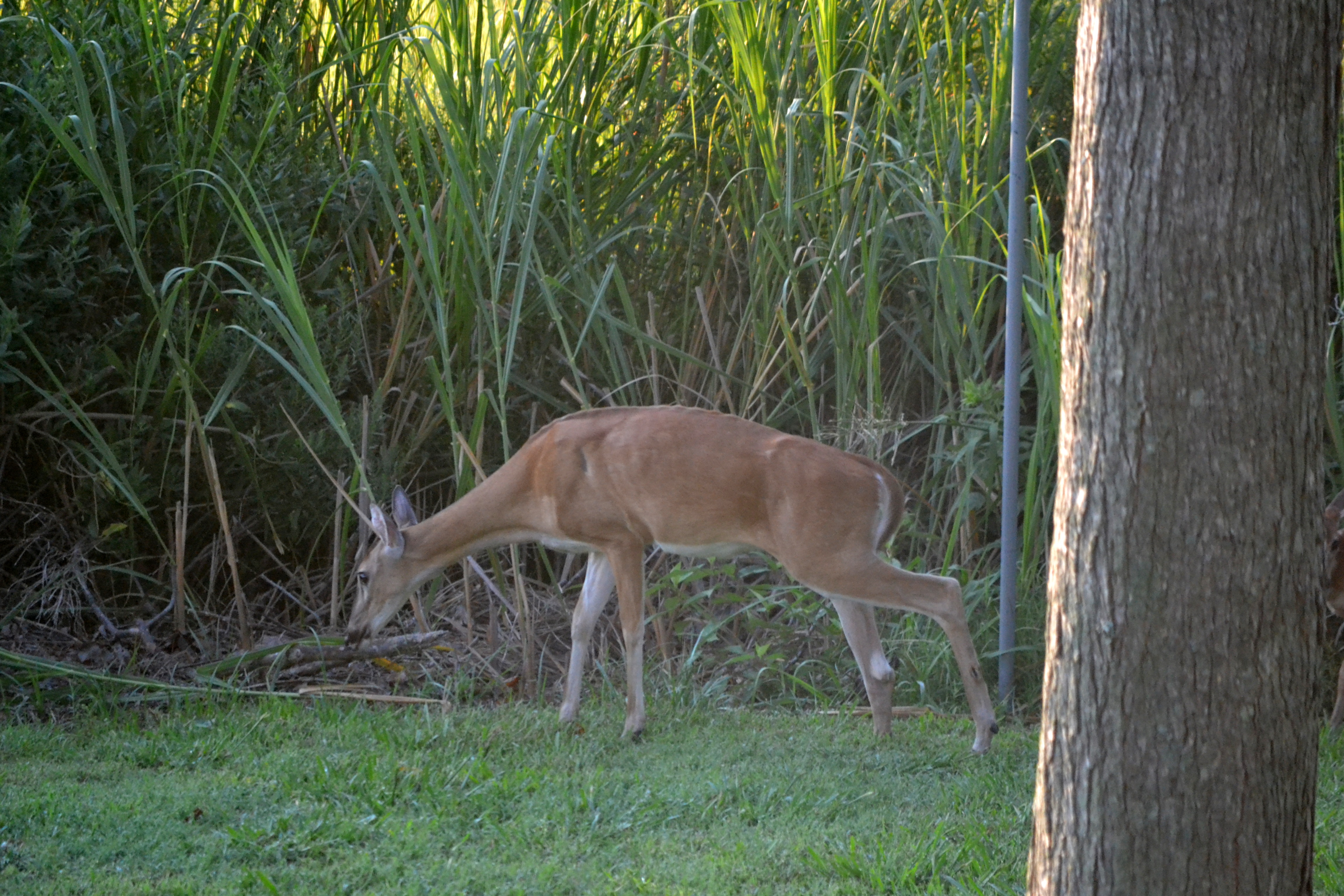 We had seen two fawns in the yard recently, so I really wasn’t surprised to see the other one emerging from the marsh grass. But I was thrilled to see Mama Deer with them. (She must have seen a dirty spot on his leg.)