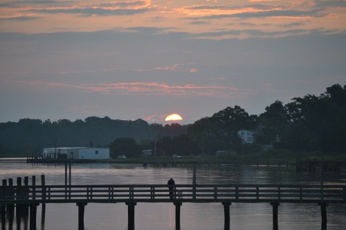 The morning was also being enjoyed by a canine sunrise fan and his master.