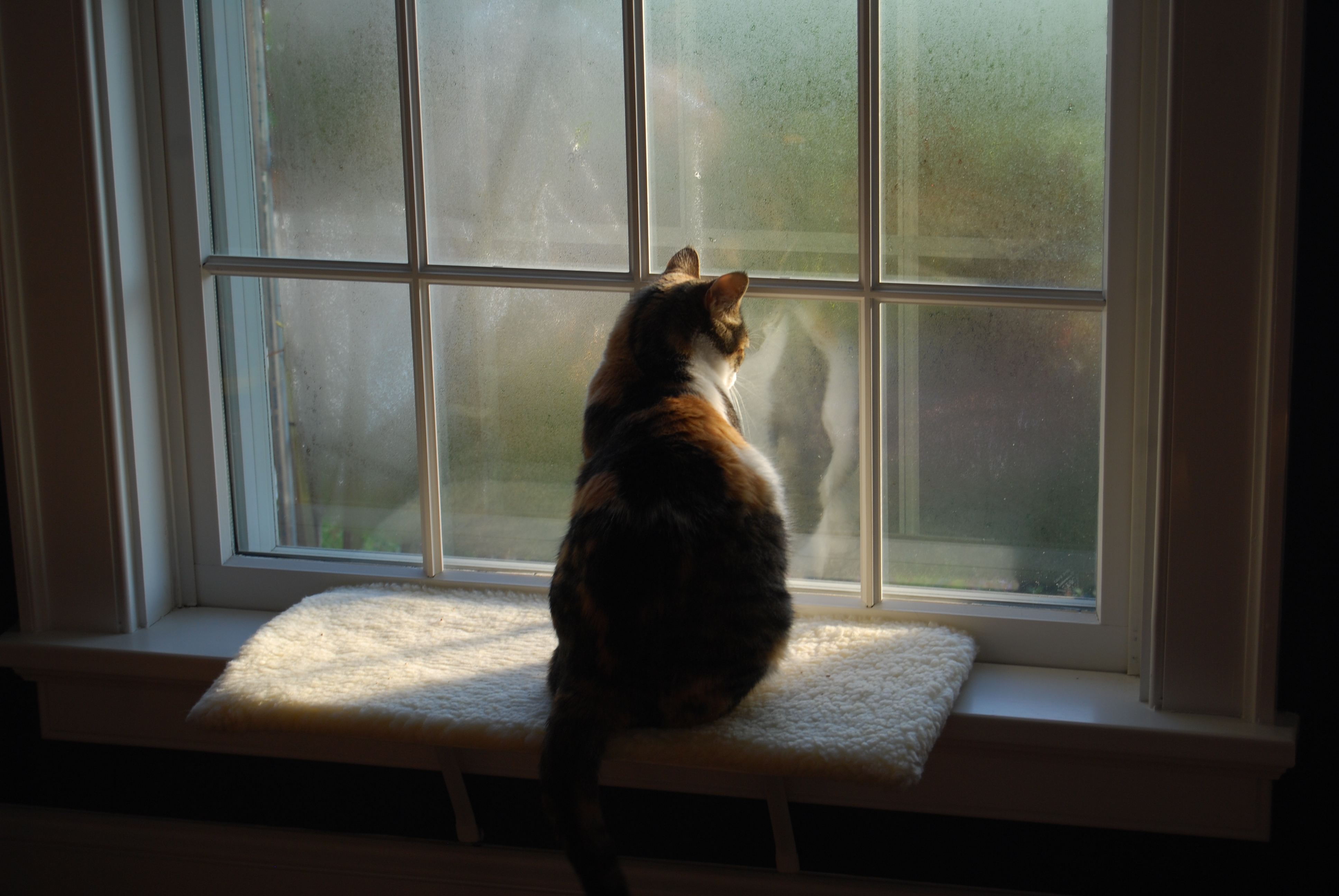 Recently, I caught Sundae on her window seat, taking in the morning sun. (The exterior of the windowpane had condensation as a result of our sweltering Virginia humidity. Annoying, but I think it added a mystical touch.)  And the photos just seemed tailor-made for kitty quotes.