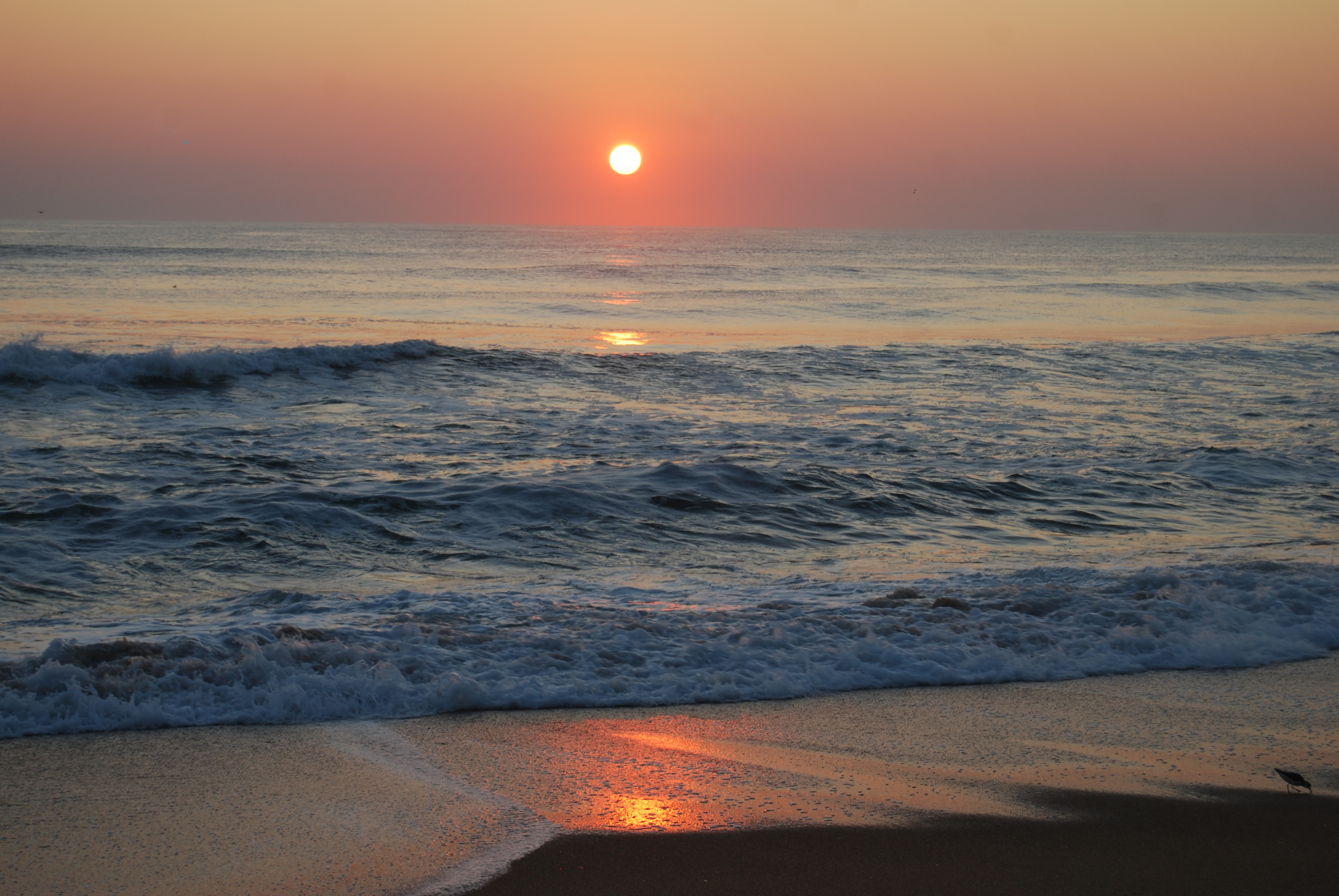 Anyway….Motor Man and I were at/in the OBX last week, and on Sunday, we began our day by watching the sunrise from the beach. See the little sandpiper in the far right corner? He and several of his buddies were putting on a show for us, searching for breakfast while avoiding the surf.