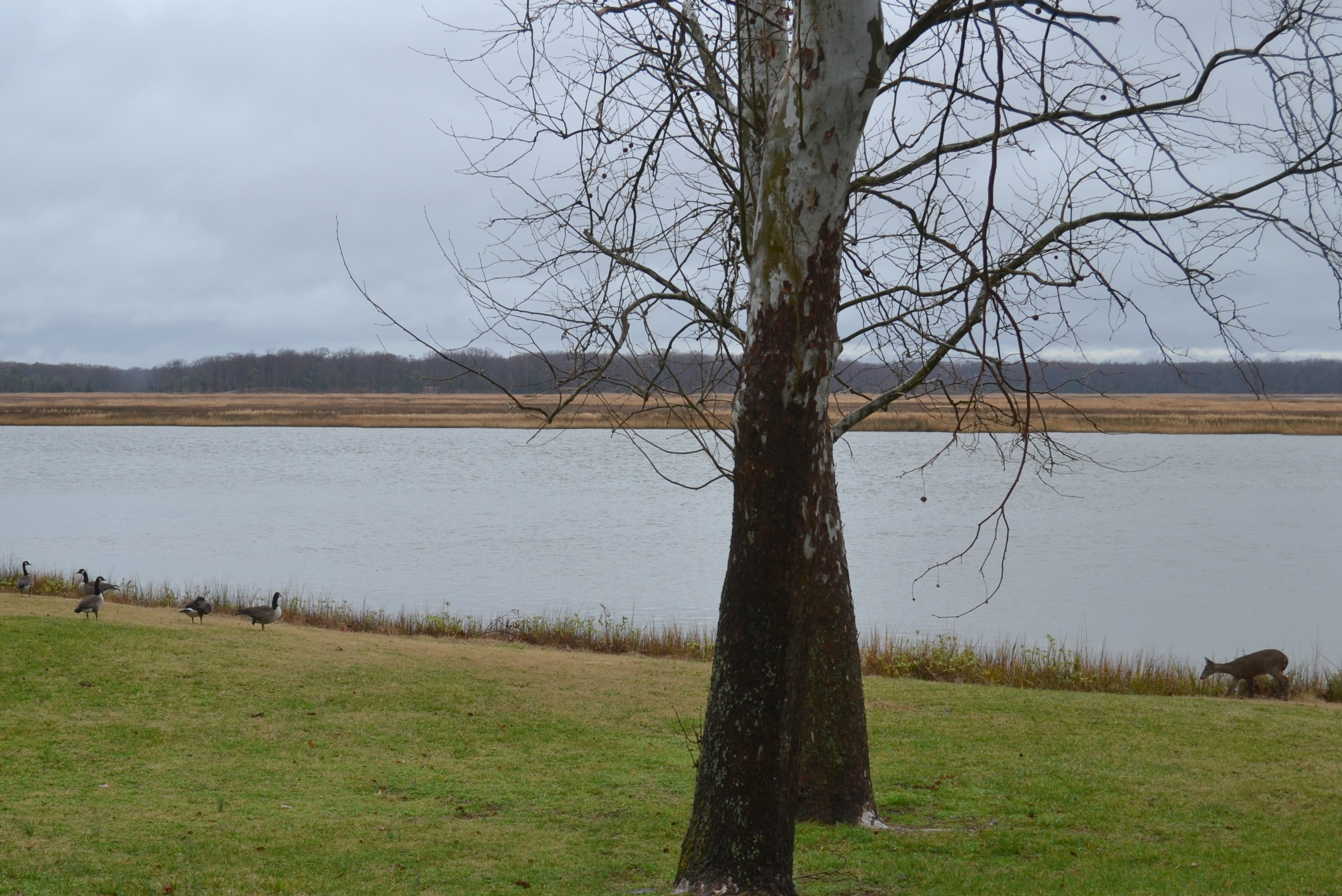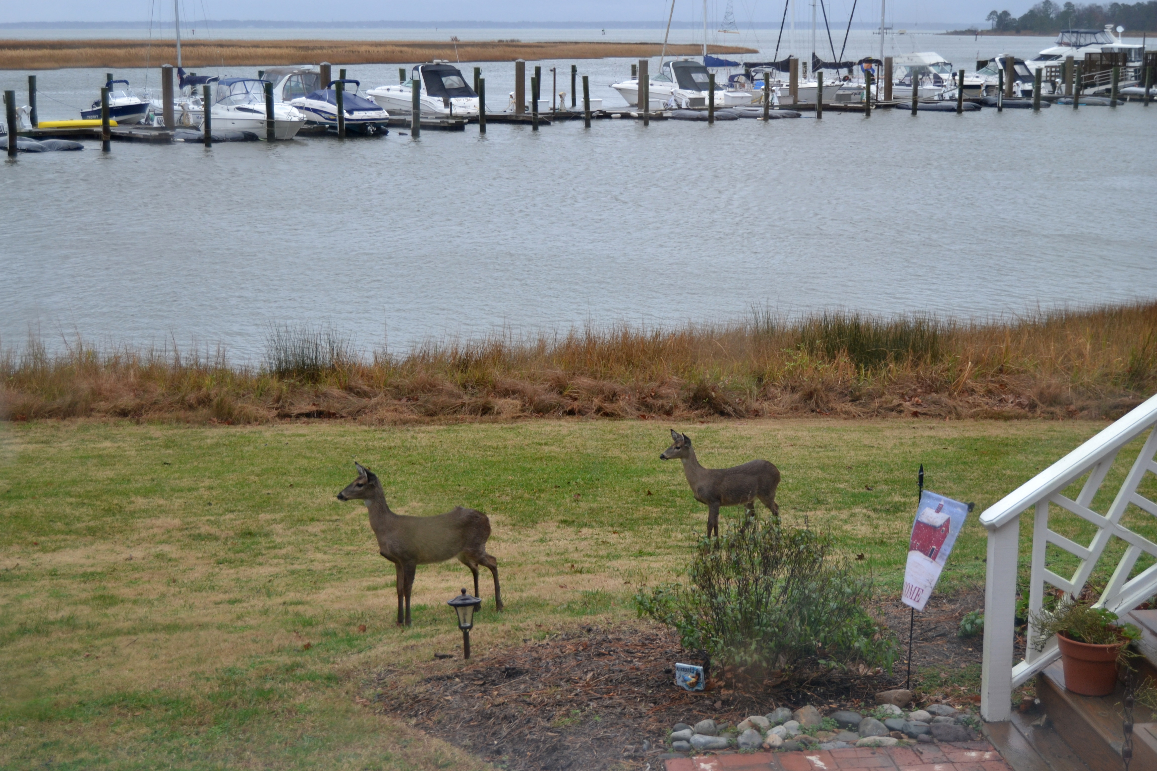 The two neighborhood fawns didn’t seem to be bothered by the wicked weather. They were, however, on high alert because of some Canada geese in our yard.