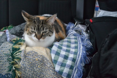 Mommy placed a throw and a little kitty bed on the back seat for me. I found it to be very comfy.