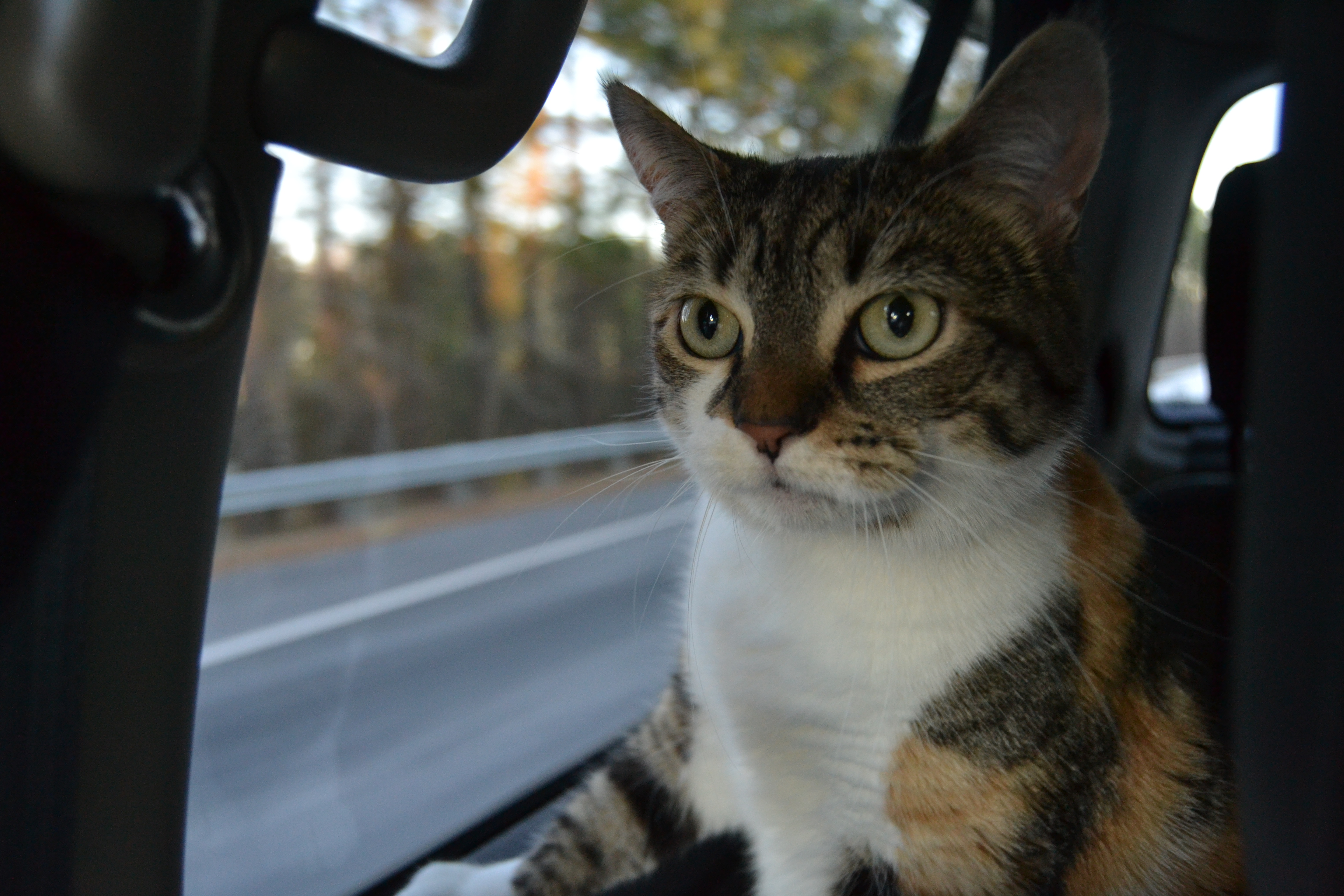 I sat up on the console for a little while, so I could keep an eye on Motor Man’s driving. After all, if I’m going to become a chauffeur, I need to learn all I can.