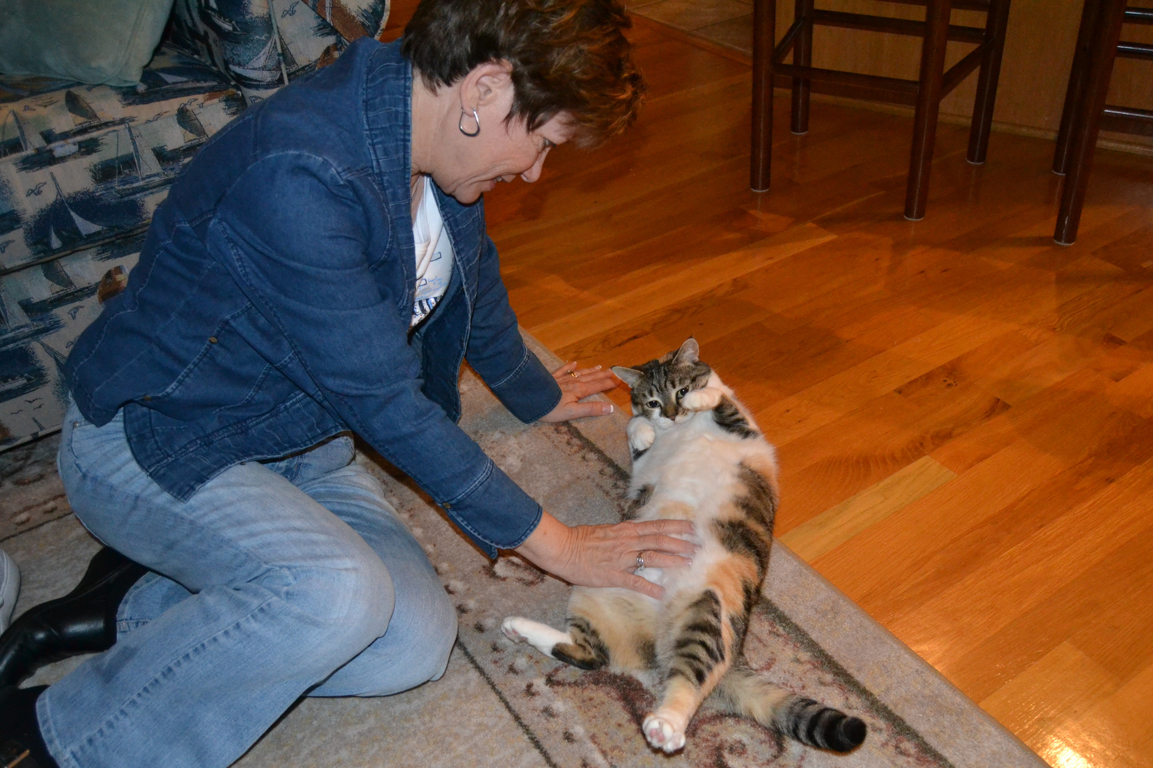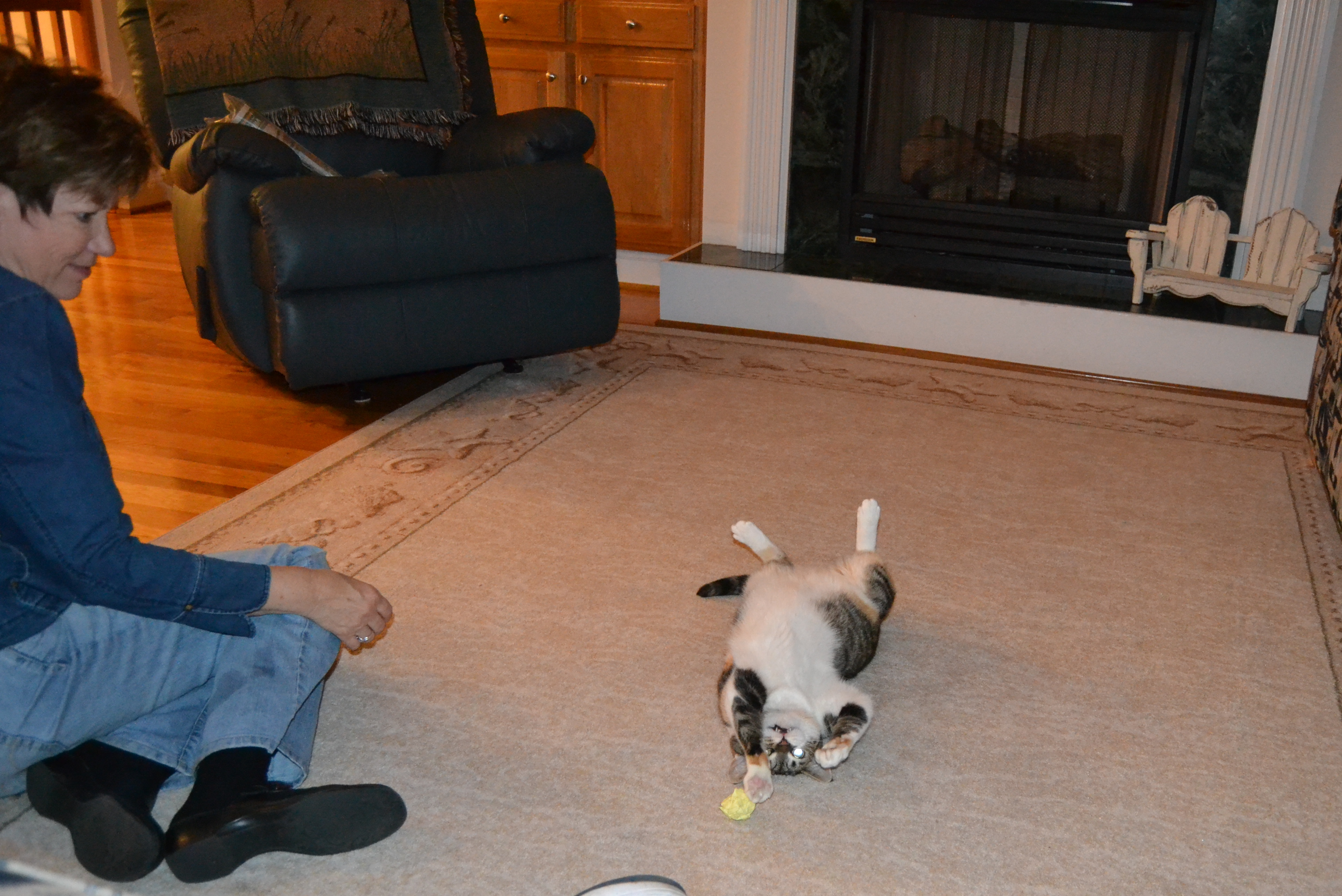 Later, I turned on the cuteness, and Motor Mommy couldn’t resist sitting on the floor to play with me.