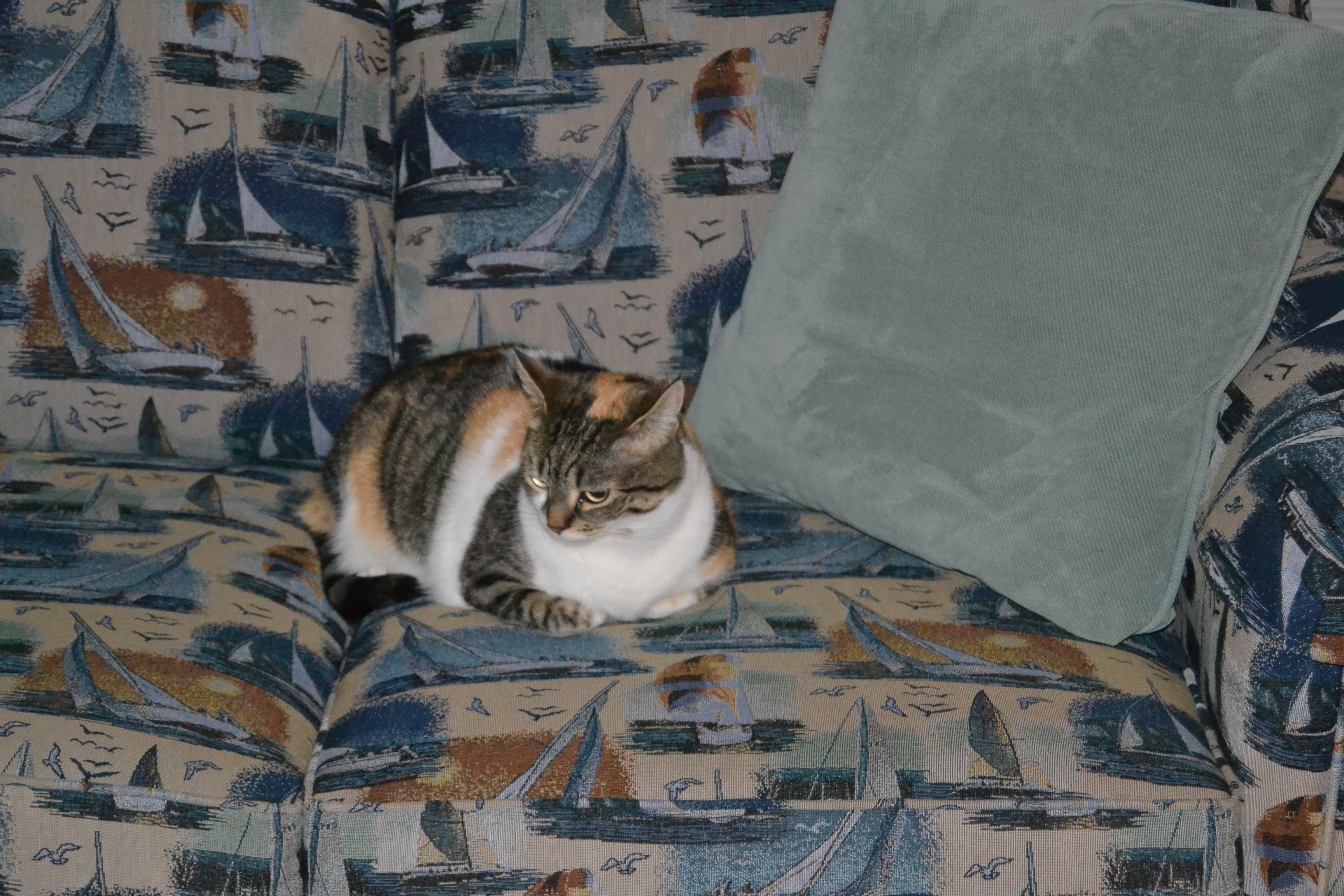 Anyway, my parents were a little concerned about how I would adjust to being in a different house. So here’s a little pictorial story. First I sought out a soft spot and found it here on the sofa.