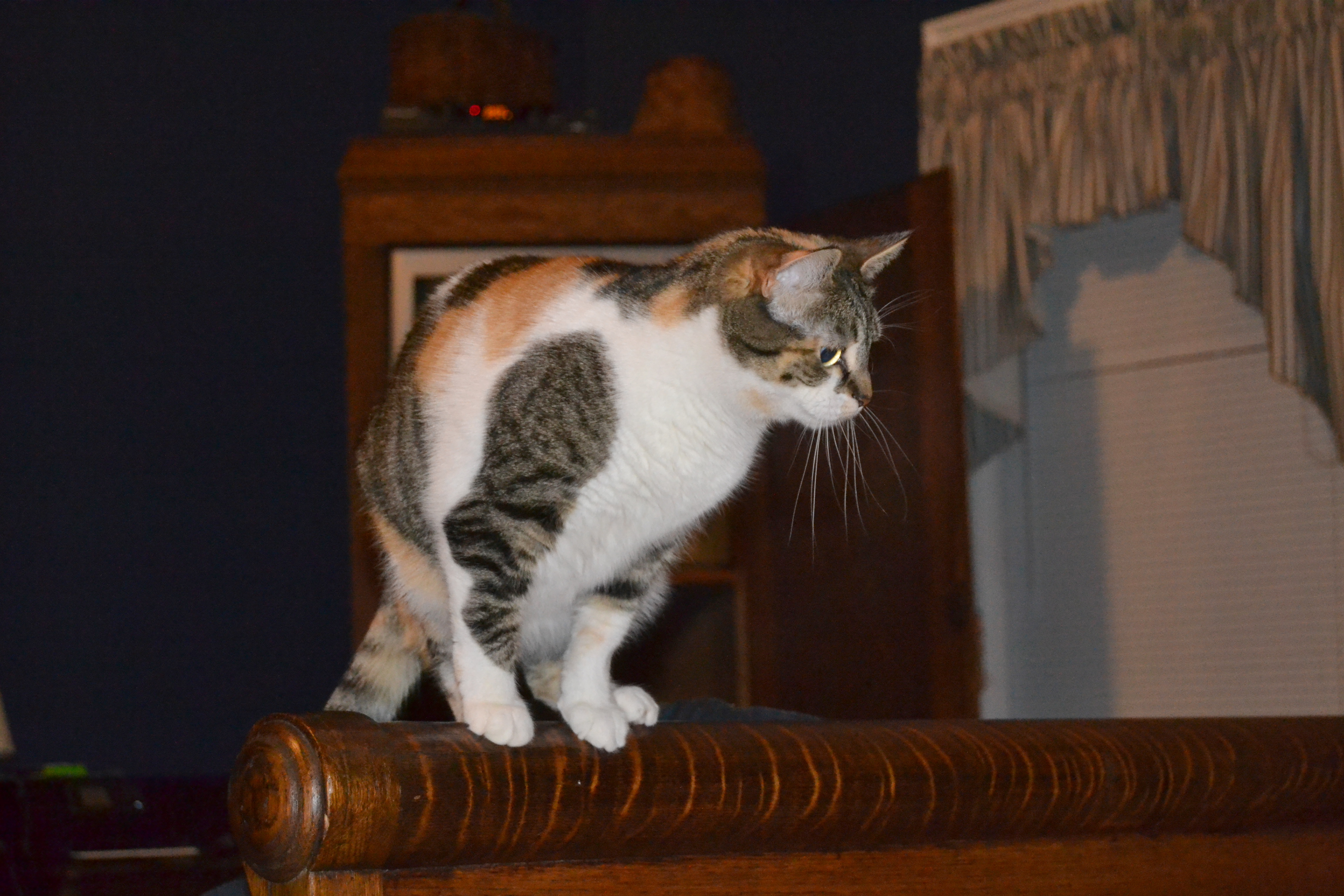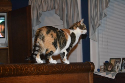 It’s Sundae, the wild jungle cat, prowling along the dangerous ledge of a steep mountain. (Are there mountains in the jungle?)