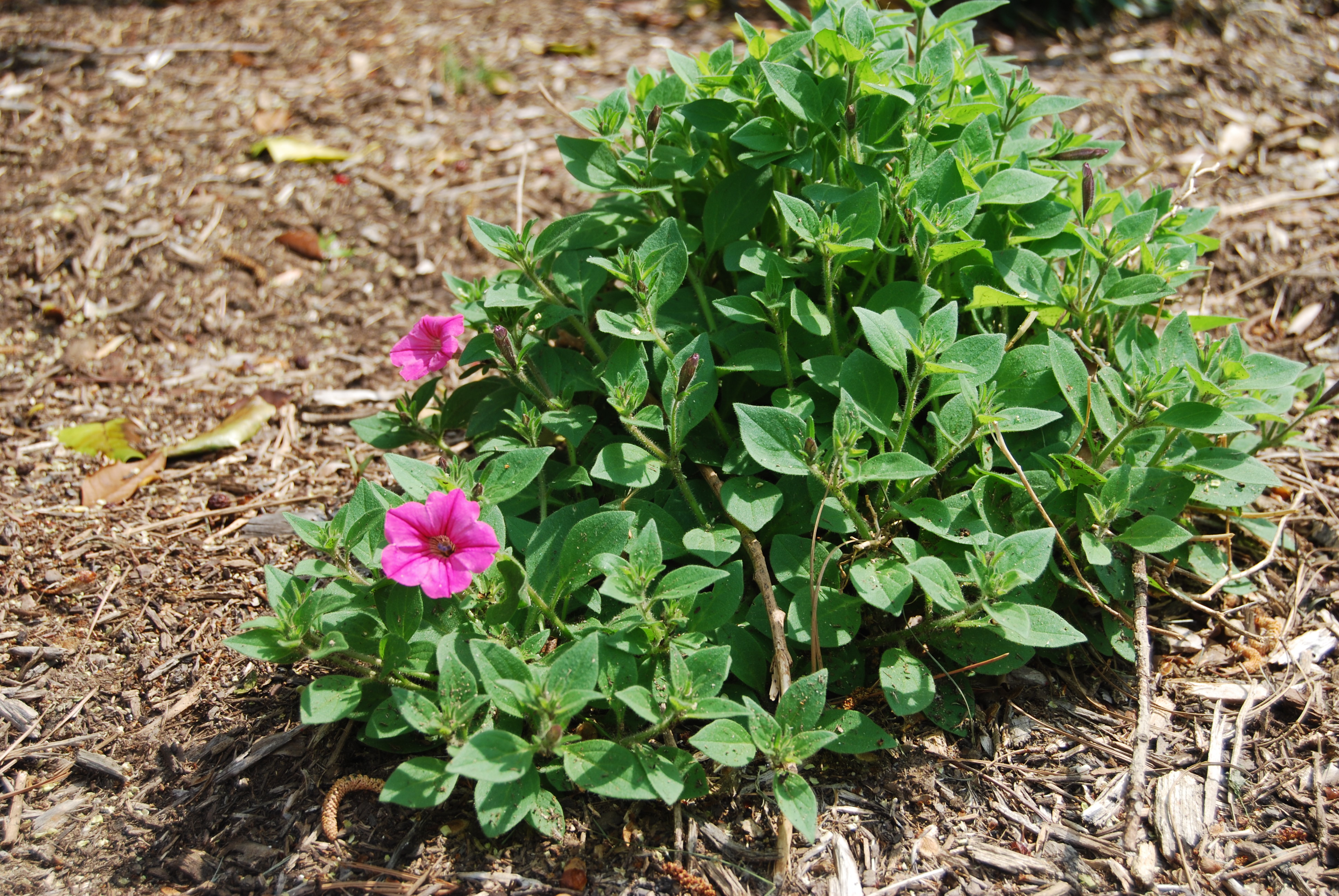 I’ve taken pictures to my local garden center and talked with the experts there. Petunia has them stumped. They aren’t familiar with a perennial petunia, which is what this appears to be.