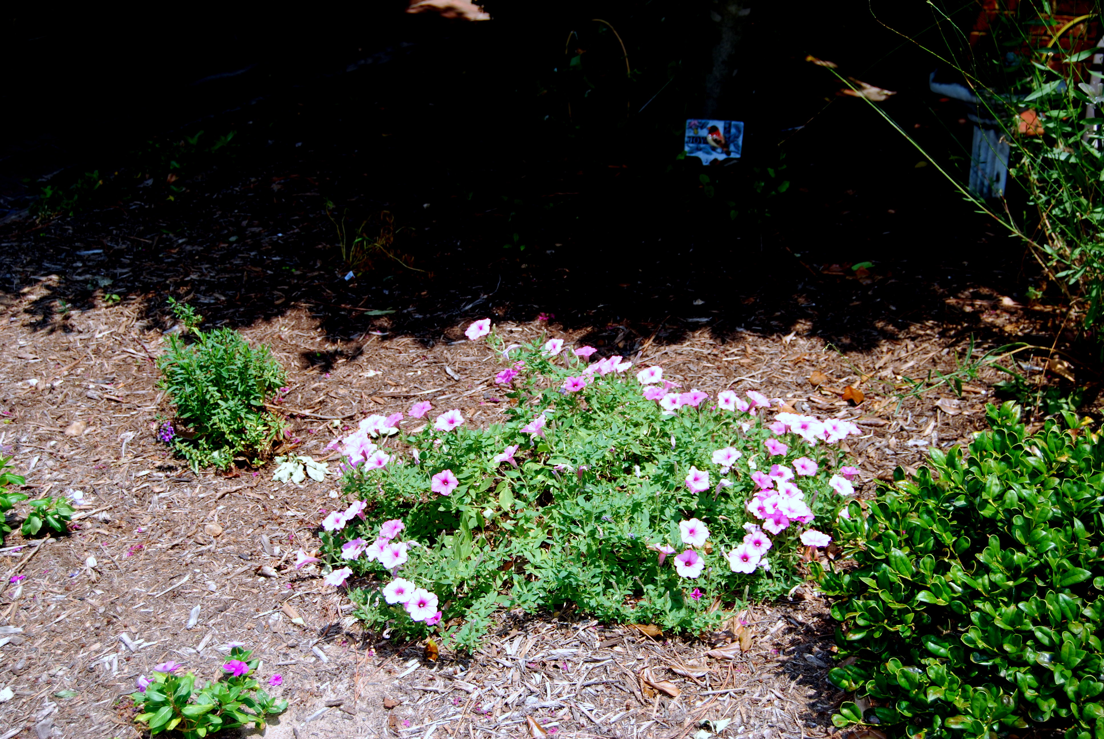 The next spring, there was the little petunia again. This picture was taken in August of 2010. What’s extra nice about Petunia is that the deer and rabbits pay her no attention.