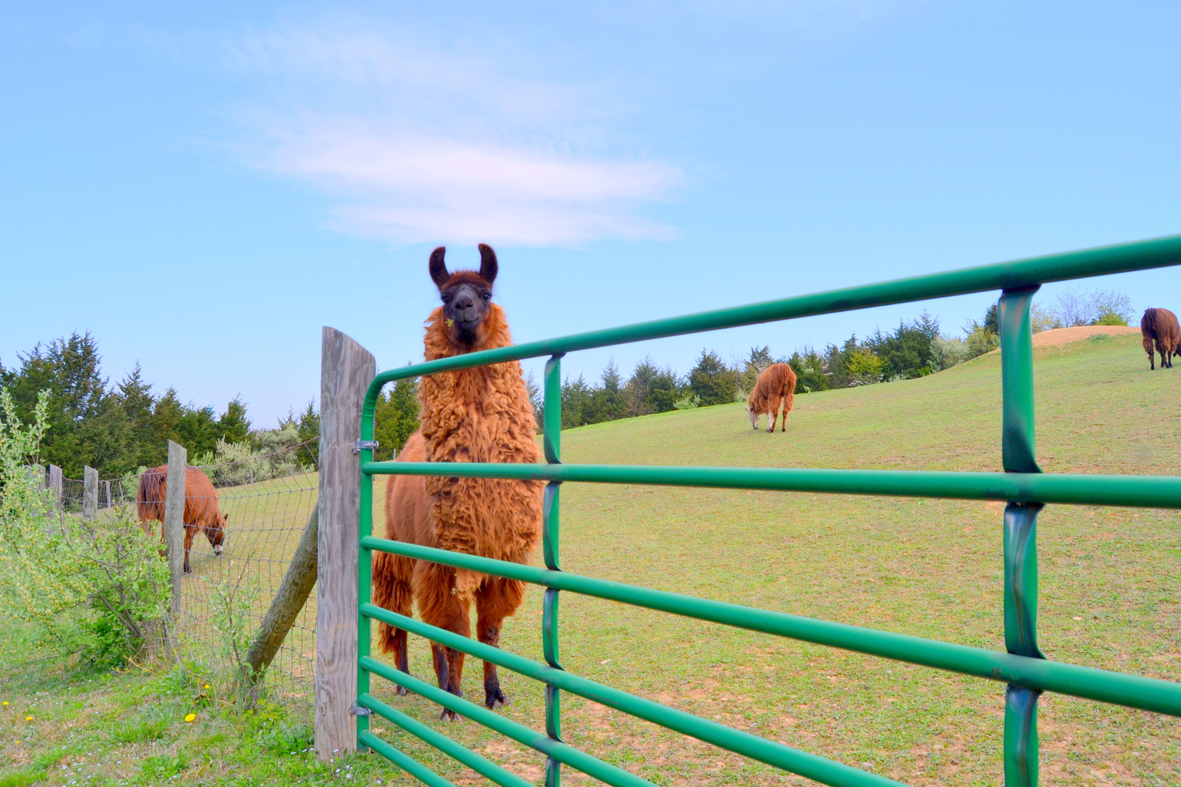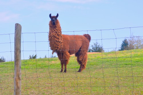 After lunch, Motor Man and I decided to drive around the area before heading home. We motored out in the country in the opposite direction from the way we came in, and I saw a sign that read: “Llamas for sale”. Motor Man dutifully turned into the drive immediately after I squealed: “ooooh……llamas!!”.
