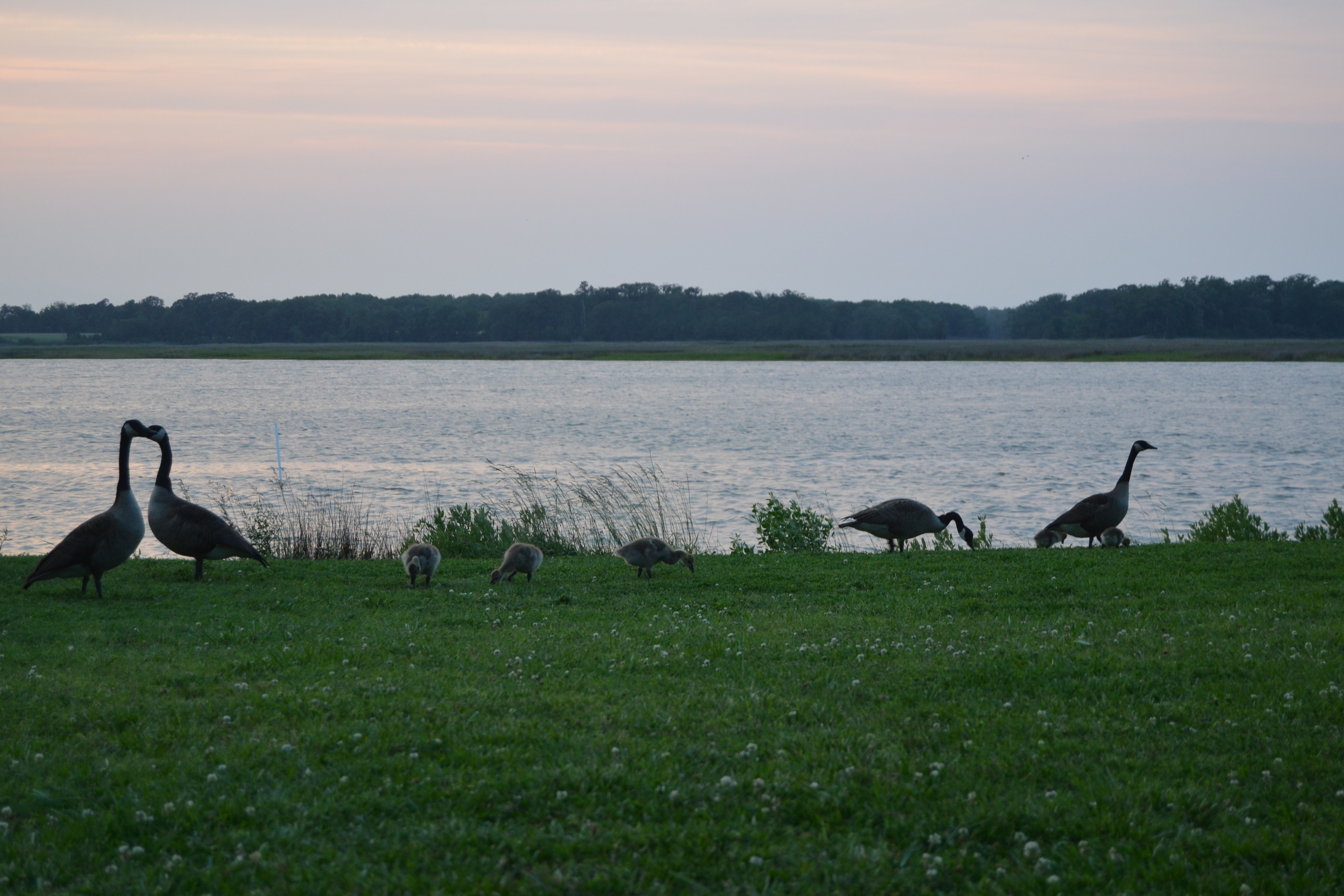 Yesterday, when I was out taking sunset photos, and giving bread to the swans, the goose families were in the yard. It’s amazing how close you can get to them when you’re feeding them corn. (Yes, they’re messy; we’re very careful about where we walk.) Thankfully, for the most part, they keep their distance from the house.