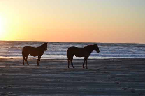 I was SO excited to see two of the wild mustangs out enjoying the view of the ocean at sunrise.