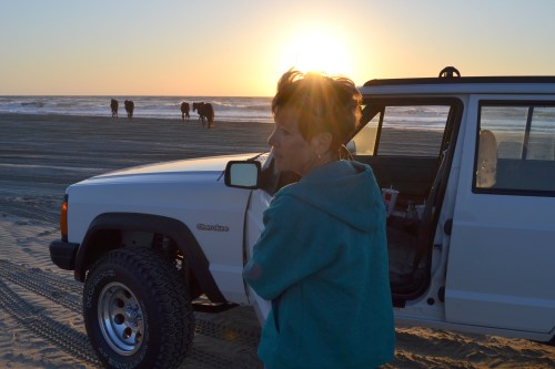 Recently, Motor Man and I bought an older model Jeep. We wanted a four-wheel drive vehicle that we could take out on the beach down at the Outer Banks. Yesterday morning was its inaugural trip. We set the alarm for  oh dark: thirty 4:30 AM, and drove up past Corolla.