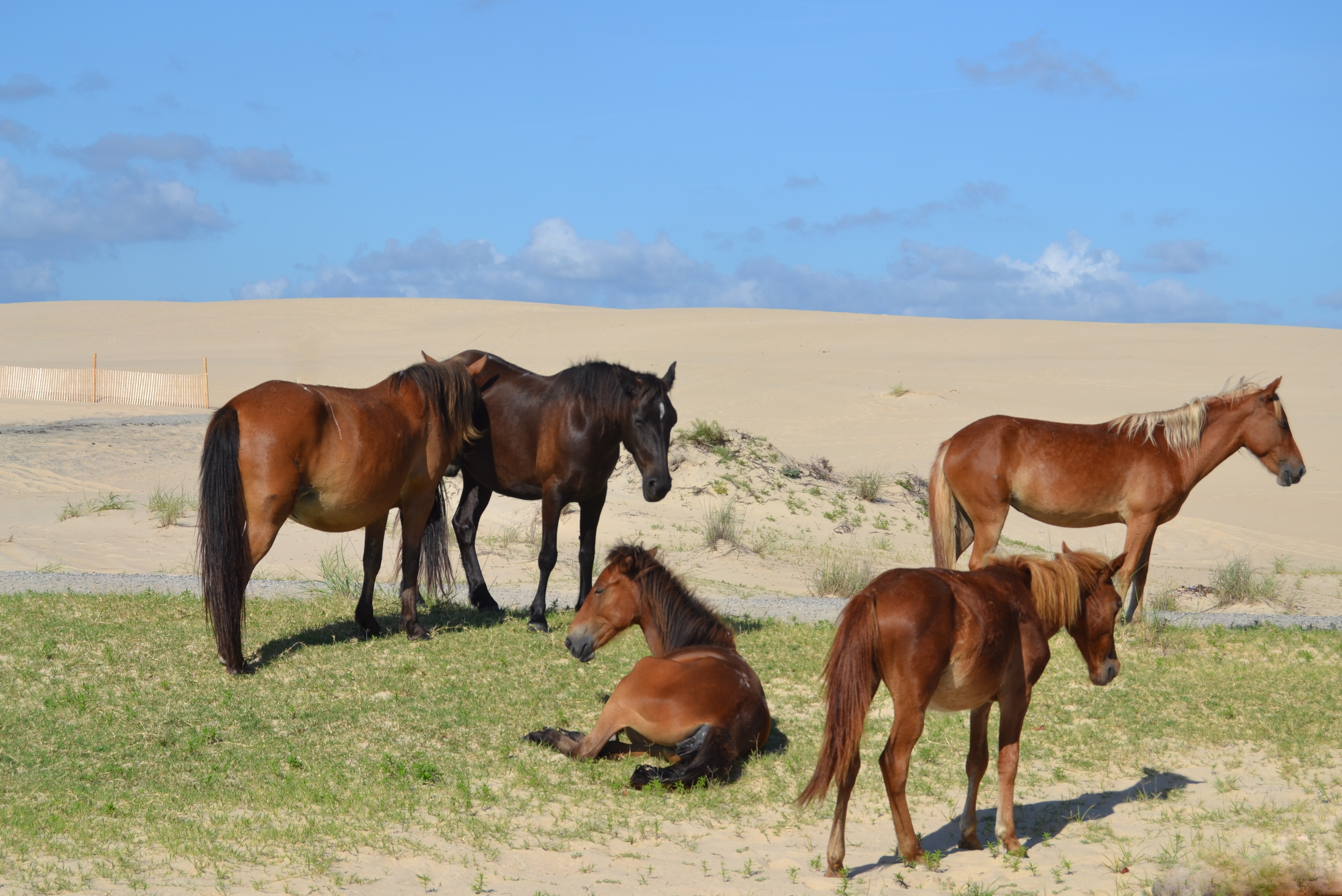 We saw a total of 41 horses on our trip, including these five, sunning themselves beside the dunes.