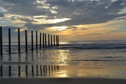 We drove along the beach up to the North Carolina/Virginia state line. This fence marks the line and extends up on the beach. It’s one of the boundaries used to contain the horses within their protected area.